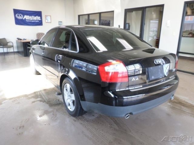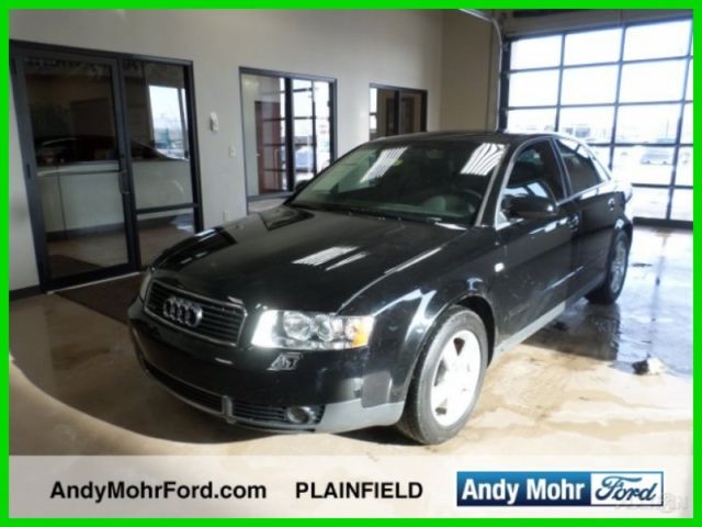 Brad McHugh (888) 529-4010 2713 E Main St Plainfield Indiana 46168 2003 Audi A4 All-wheel Drive Quattro Sedan 3. 0 Vehicle Information VIN: WAULT68E43A315404 Stock: P8033A Mileage: 154. 39 Color: Black Trans: 5-Speed Automatic with Overdrive and Tiptronic Engine: 3. 0L V6 SMPI DOHC MPG: 17 City / 25 Highway Drivetrain: quattro 1 of 45 View Large Images Description 3. 0L V6 SMPI DOHC. quattro. and Black w/Leather Seating Inserts or Premium Leather Upholstery. Make a mad dash for it. Runs at full tilt. Tired of the same dull drive? Well change up things with this stunning 2003 Audi A4. The pin-you-to-your-seat performance of this superb A4 will make it a favorite among our more passionate buyers. J. D. Power and Associates gave the 2003 A4 4. 5 out of 5 Power Circles for Overall Performance and Design. Get Mohr for your Money at Andy Mohr Ford Lincoln. Call us today at 317-837-2009! Credit Application Directions to Dealer Contact Us Options and Standard Features Options 10 Speakers Am/Fm Radio Cassette Cd Player Radio Data System Air Conditioning Automatic Temperature Control Front Dual Zone A/C Rear Window Defroster Power Driver Seat Power Steering Power Windows Remote Keyless Entry Four Wheel Independent Suspension Speed-Sensing Steering Traction Control 4-Wheel Disc Brakes Abs Brakes Dual Front Impact Airbags Dual Front Side Impact Airbags Front Anti-Roll Bar Overhead Airbag Rear Anti-Roll Bar Brake Assist Electronic Stability Control Front Fog Lights Headlight Cleaning Rear Fog Lights Panic Alarm Security System Speed Control Bodyside Moldings Bumpers: Body-Color Heated Door Mirrors Power Door Mirrors Driver Door Bin Driver Vanity Mirror Front Reading Lights Genuine Wood Console Insert Genuine Wood Dashboard Insert Genuine Wood Door Panel Insert Illuminated Entry Leather Shift Knob Leather Steering Wheel Outside Temperature Display Passenger Vanity Mirror Rear Reading Lights Rear Seat Center Armrest Sport Steering Wheel Tachometer Telescoping Steering Wheel Tilt Steering Wheel Trip Computer 12-Way Power Front Sport Bucket Seats Front Bucket Seats Leather Seating Inserts Power Passenger Seat Split Folding Rear Seat Front Center Armrest W/Storage Passenger Door Bin 7J X 16" Et 42 5-Spoke Cast Alloy Wheels Variably Intermittent Wipers Basic Information VIN Number: WAULT68E43A315404 Stock Number: P8033A Model Year: 2003 Make: Audi Model: A4 Style Name: All-Wheel Drive Quattro Sedan 3. 0 Vehicle Trim: 3. 0 Body Type: Sedan Vehicle Type: Sedan Exterior Color: Black Interior Color: Black Engine Engine Description: 3. 0L V6 SMPI DOHC Fuel Type: Gas Fuel Induction: Sequential MPI Valves Per Cylinder: 5 Aspiration: Normal MPG Automatic City: 17 MPG Automatic Highway: 25 DriveTrain Transmission: 5-Speed Automatic With Overdrive And Tiptronic Drive Train Type: Quattro 4WD Type : Full-Time Driven Wheels: All-Wheel Drive Locking Hubs: Permanent Wheels Rims: Silver Alloy Wheels Spare Rim Type: Alloy Suspension Independent Suspension: Four-Wheel Stabilizer Bar: Front And Rear Instrumentation Clock External Temp Low Fuel Level Tachometer Trip Computer Roof and Glass Front Wipers: Variable Intermittent Rear Defogger Privacy Glass: Light In Car Entertainment Audio System: AM/FM Stereo Speakers: 10 Antenna Type: Window Grid Seats Drivers Height: Power Drivers Lumbar: Power 4-Way Drivers Power: 8 Passenger Height: Power Passenger Lumbar: Power 4-Way Passenger Power: 8 Seating Capacity: 5 Front Seat Type: Bucket Upholstery: Leather Center Armrest Folding: Fold Forward Seatback Convenience Cruise Control Windows: Power Windows Steering Power: Speed-Proportional Power Steering Steering Adjustment: Tilt And Telescopic Mirrors: Power Remote Power Door Locks Cargo Nets: Cargo Net Center Console: Full With Storage Cupholders: Front And Rear Door Pockets: Driver And Passenger Power Outlets: 2 Remote Trunk Release: Power Seatback Storage: 2 Comfort Air Conditioning: Automatic Air Filtration: Interior Air Filtration Trunk Lights: Cargo Area Light Center Console Trim: Genuine Wood Dash Trim: Genuine Wood Door Trim: Genuine Wood Mats: Carpet Front And Rear Reading Lights: Front And Rear Shift Knob: Leather Steering Wheel Trim: Leather Vanity Mirrors: Dual Illuminated Vanity Mirrors Features Aux Engine Cooler: Regular Bumpers: Body-Colored Door Reinforcement: Side-Impact Door Beam Safety Driver and Passenger Airbag Head Airbags: Curtain 1St And 2Nd Row ABS: 4-Wheel Anti Theft System Brake Assist: Braking Assist Stability Control Safety Locks Engine Immobilizer Turning Circle: 36. 4 Door Reinforcement: Side-Impact Door Beam Front Headrests: Manual W/Tilt Rear Headrests: 3 Rear Center Seatbelt: 3-Point Belt Side Airbag Stability Control Towing and Hauling Tie Downs: Cargo Tie Downs Doors Rear Door Type: Trunk Side Door Type: Conventional Dimensions Front Head Room: 38. 4 Front Shoulder Room: 55. 1 Front Leg Room: 41. 3 Rear Head Room: 37. 2 Rear Leg Room: 34. 3 Rear Shoulder Room: 53. 4 Luggage Capacity: 13 Maximum Seating: 5 Length: 179. 0 Width: 69. 5 Height: 56. 2 Wheelbase: 104. 3 Ground Clearance: 4. 2 Curb Weight: 3. 71 Apply Now Secure Credit Application Applying for a vehicle loan online is one of the quickest and easiest application methods. Our secure application is easy to complete. all you need are a few personal and employment details. Contact Andy Mohr Ford 2713 E Main St Plainfield Indiana 46168 View Map Ask for:Brad McHugh Direct:(888) 529-4010 Contact: Contact Us Hours Mon-Friday:08:00am-08:00pm EST Saturday:08:00am-06:00pm EST Sunday:10:00am-06:00pm EST Terms Placing a Bid: Your bid constitutes a legally binding contract to purchase this vehicle. Please do not bid if you're not seriously interested or financially able to purchase this vehicle. Please read eBay's User AgreementAndy Mohr Ford reserves the right to. Obtain and verify the registered information of all users who bid on this auction. Cancel any and all bids at our discretion. or end the auction early if necessary. Bidders Age: You must be 18 
