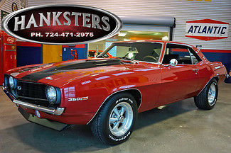 DescriptionClassic car insurance starts around $25/mo for a $25. 00 vehicle Stock # 69CAM2404Burgundy 1969 Chevrolet Camaro SS Style ExteriorBurgundy exterior with Black Z-StripesSteel 2 inch cowl induction hoodFront air dam and rear spoilerSS grille and tail panel emblems350 front fender emblems15 inch Cragar 5-spoke aluminum wheelsBFGoodrich Radial TAs 215/70R15s on the front and 275/60R15s on the rearInteriorAll new Black interiorFront bucket seats with headrestsFactory dash with 120mph speedometer and fuel gaugeAftermarket 3-gauge cluster with water temperature. voltmeter and oil pressure gaugesRosewood steering wheelHurst 4-speed floor shifterDriveline and Running Gear5. 7liter 350ci GM Goodwrench crate engine451 Muncie M21 4-speed manual transmission10-bolt GM POSI rear axle and housingStock suspensionPower steeringPower front disc brakes with drilled and slotted rotorsRear drum brakesAdditional OptionsHEI ignitionChrome air cleaner and valve coversEdelbrock 1406 single feed carburetorGM Performance Parts aluminum intakeVortec headsHeadersDual exhaust with tailpipesChrome alternatorAluminum pulleysFlex-A-Lite fanEngineered Cooling Products aluminum radiator with shroudHeater lines are hooked upFREE SHIPPINGHanksters offers Free Standard Shipping on every vehicle in stock to all of our customers within the U. S. Offer only applies to full retail price offers to customers within the 48 Contiguous States. Affordable Financing and Worldwide Shipping Available. For questions. please email or call. We have several classic cars in stock. please contact us directly for the most current list of inventory. Hanksters. its agents or employees shall not be held liable to anyone for any errors. omissions or inaccuracies under any circumstances. The entire risk for utilizing the information contained on this site or linked to this site rests solely with the users of this site.