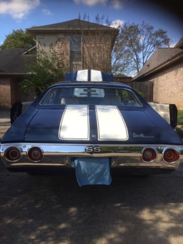 Celebrity owned - title will reflect. 1971 Chevrolet Chevelle SS 454. cams. headers. exhaust. intake. as seen in pic this motor has been professionally built and sounds like it looks! Transmission built to handle power!! 20" foose wheels. tires have 90%. heat/nor ac working! No rust. clean floor pans. new carpet. near perfect leather seats. all four power windows. horn works. wood grain steering wheel. b&m slap stick automatic shifter. clear title. garage kept! Below is a list of few things that have been done but overall. $30k has been invested! Engine replaced with GM 454 Performance engine-----425 HP. has less than 1000 milesRotella synthetic 5w-40 oil usedRemanufactured/rebuilt transmission included replacing pan and gasketReplaced speedometer cable and gear housing assembly Replaced front sway bar with new link pin kits and bushingsRemoved drive shaft and sent out for rebuildReplaced all four sections of parking brake cablesReplaced rear section of brake lineWheel alignment included:caster. amber and toe reset on front. Camber and toe reset on rear axleBrake system flushRear brake shoe service:includes replaced both sets of rear brake shoes. resurface both rear drums. lubricanting and cleaning rear hardware and wheel cylinders. Bearings repacked. Front brake disc service:includes replace front brake pads. esurface/replacement of both rotors and lubrication of caliper slidesRemoved and rebuilt rear differential with limited slip 373 gear ratioTear down. diagnosed and adjustment of carburetor Replaced window wiper motor assembly Replaced circuit breakersNew battery 3/25/15 O'reilly 5/yr warranty On Mar-31-15 at 19:33:51 PDT. seller added the following information:Original factory paint. More pictures and a video at Freechildmoon. tumblr. comOn Apr-01-15 at 14:53:35 PDT. seller added the following information:On Apr-01-15 at 14:57:28 PDT. seller added the following information: