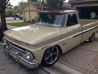 1966 CHEVY C10 HOT ROD -BRAND NEW 20 INCH BOSS WHEELS AND TIRES-DROP SPINDLES -BRAND NEW FRONT END (POWER COATED) -FRONT AND REAR DISC BRAKES-TURBO 400 TRANSMISION-CUSTOM DASH-HID LIGHTS -NEW CARBURATOR. ATHER PUMP. LTERNATOR. ADIATOR. OOD BED. IGHT. UMPER. RILLE. OWER STEERING CONV. AINT 4 YEARS OLD. TC