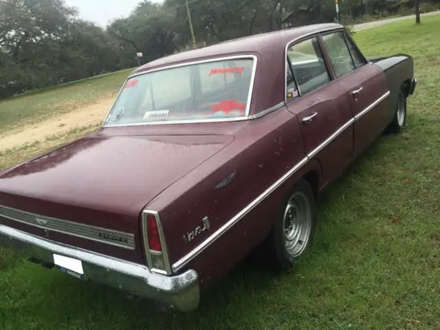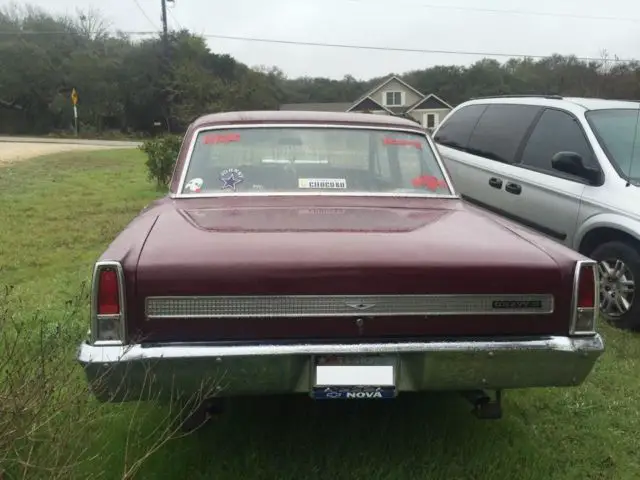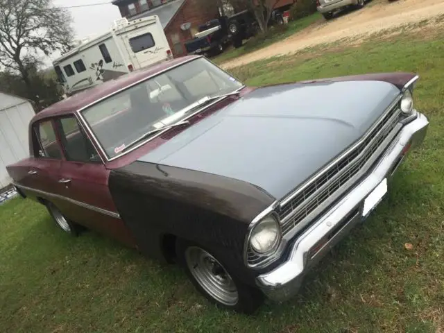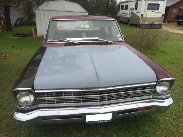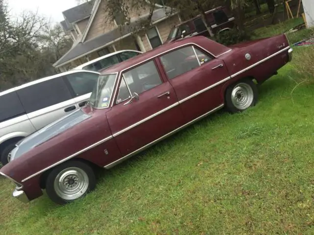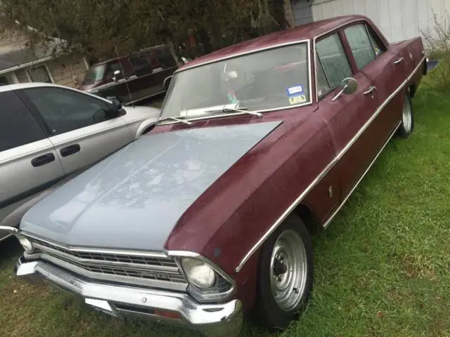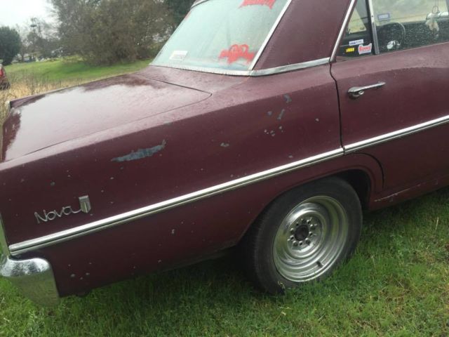 1967 CHEVROLET NOVA Thank you for visiting my auction. I will try my best to describe the car as I can but Please contact me if you need more detailed information. I am selling my 1967 Chevy II Nova 4 Door Sedan. Its a Good Running Project. It has 15"X6" Chrome "Craiger" Smoothies Wheels (Caps are Included but have some dents from normal driving). Strong 4. 1L 250 Inline Straight 6 with Good 3 Speed Manual Transmission. The Car Runs and drives but needs some TLC and Restoration. There is some rust on the car and there are also some body repairs from the previous owner(s). First. the Floor pans underneath need to be replaced. It needs front end suspension work (bushings. control arms. idler and pitman arms. ball joints. break and wheel check and alignment etc. ) and there is a leak in the rear differential fluid. Interior seats and carpet need restoring and there is a small chip and hairline crack on the bottom passenger side corner of the front windshield. Front and Rear windows are intact and roll up and down but may need new weather stripping and restoration. Note: Rear Passenger window is a bit hard to roll up and down. All dash components work but dashboard needs restoration. It comes with the Original Stereo and it turns on but not sure if it works because there are no speakers connected. Interior. carpet and Seats need upholstering and restoration. The car starts. runs and drives but I recommend a complete head & valve job. and tune up. The car has lots of recently replaced parts: Aluminum radiator with electric fans. starter. alternator. HEI distributor. exhaust and intake manifolds and it has custom dual exhaust. new 1bbl Rochester carburetor. hood. bumper. right front fender. headlights (all lights work). gas tank. The car does have a clear Salvage Title but contact me if you need more detailed information. more photos. actual mileage and vehicle history prior to bidding. Buyer is responsible for vehicle pickup and delivery and/or shipping. NOTE: Vehicle is SOLD AS IS. NO WARRANTY. I hate to sell but due to health issues I am no longer able to work on the car. Reasonable Offers Welcome & Thank you for visiting my auction.