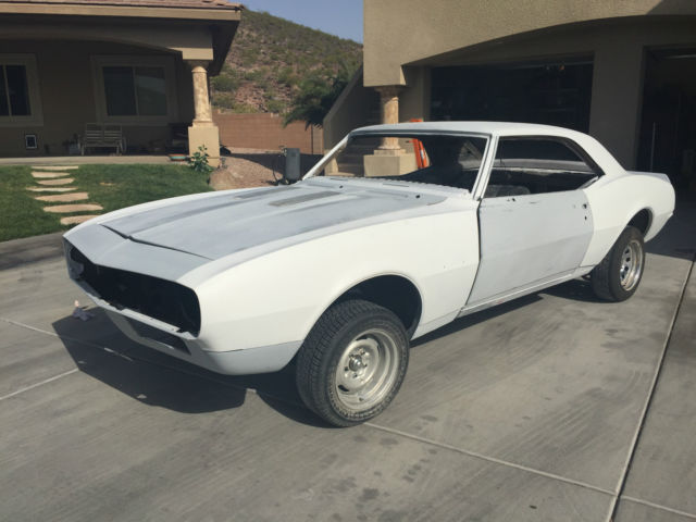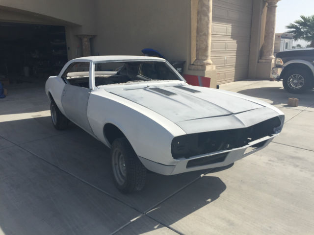 Up for grabs is a 1967 Camaro SS with alot of options. This is a true SS. The options are console. A/C. tinted glass all. speakers rear. interior decor group. exterior molding group and bumper guards rear. Alot of man hours and money has been out into what it looks like now. Though it does need some work to get it paint ready it is very very close. The driver side fender and door need alittle alignment still as well as attention is needed to the driver side rocker (Has dents in it). As you can see from the pictures the engine bay has been painted. The hood is original it did have hood pins that have been fixed but still requires some additional work to be perfect. The a-arms are the correct 67 along with the subframe. Here is a list of the new parts that were installed and those that are in boxes. This car I would say is 97% complete with the parts missing that i know of is the console engine and transmission. This car has a clean title. All Parts Below are Brand New:Driver full quarter (Installed)Passenger full quarter (Installed)Front bumper Rear bumperDeluxe seat upholstery (front and rear)Seat foam (front only)All emblems needed to complete carRS fenders driver and passenger(Installed)Cross Panel (Installed)LH quarter skinCarpetQuarter interior panel upholsteryDisk Brake Kit (Installed)Calipers (Not installed)Power brake boosterSway bar end linksTie rods (Installed)Bushing kit front subframe (Installed)Bushing kit upper and lower a-arms (Installed)HeadlinerVinyl topAll brake linesRoof drip rail moldingsWindow moldings (front and rear)Interior a pillar plasticWheel opening chrome Kick panels (2)Trans hump (Installed)Trunk lid (Installed)Spoiler (Installed)Passenger side rocker (Installed)Radiator support (Installed)Below are parts that are extras:Doors (both driver and passenger)Trunk lidCross Panel1969 chevy subrameRadiator supportPlease Call With any questions (702)596-8784 Nick