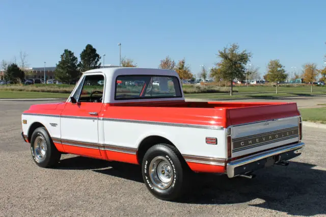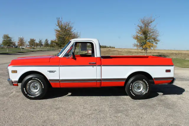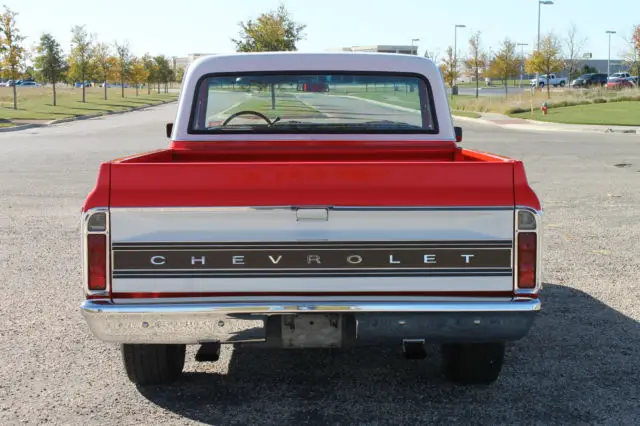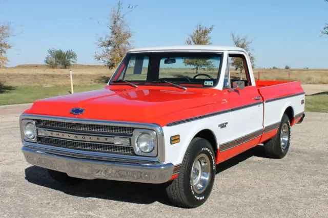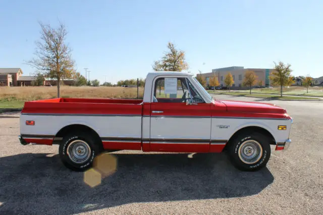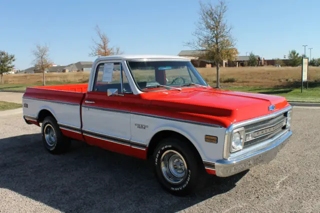 1969 CHEVROLET C-10 Vintage Autohaus & Imports is proud to present this very popular year model short bed truck. The red and white paint on the truck is in like new condition. The body has solid sheet metal. The black interior is in new condition. The truck is equipped with power steering and brakes. Vintage a/c and heat. aftermarket in dash stereo. The Power comes from a fresh built 396 cu in. engine and fresh built 700 R-4 transmission. Engine has a new set of Hooker headers with Edelbrock intake and carburetor with a few dress up pieces as well. Factory rally wheels and new tires finish out the exterior look. The truck is very solid driving. steering is positive and has a nice ride. The gas tank was relocated under the rear of the bed and is aluminum. We invite private inspection and do look at trades. WE ACCEPT TRADES For more information and photos please visit http://www. vaitx. com or call Vintage Autohaus & Imports at 806-359-9600. This vehicle is being advertised locally. we reserve the right to remove the listing at any time. We will accept trades. ZERO FEEDBACK OR NEWLY SIGNED UP BIDDERS MUST CONTACT US FIRST. DISCLAIMER This vehicle is being sold as is. where is with no warranty. expressed written or implied. No allowance or set aside will be made on account of any incorrectness. imperfection. defect or damage. Any descriptions or representations are for identification purposes only and are not to be construed as a warranty of any type. It is the responsibility of the buyer to have thoroughly inspected the vehicle. and to have satisfied himself or herself as to the condition and value and to purchase based upon that judgement solely. The seller shall and will make every reasonable effort to disclose any known defects associated with this vehicle at the buyer's request prior to the close of sale. Seller assumes no responsibility for any repairs regardless of any oral statements about the vehicle.