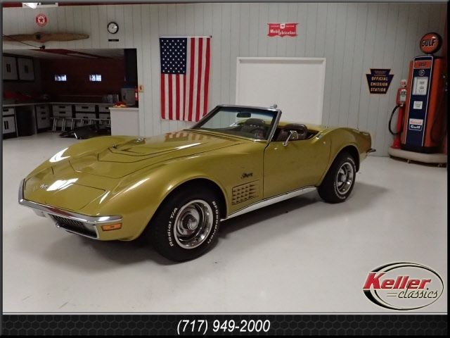 2 Keller Classics1030 Schaeffer RoadLebanon. nbsp;PA 17042(717) 949-2000 VEHICLE DETAILS VEHICLE SPECIFICATIONS Year 1971 Make Chevrolet Model Corvette Body Type 2 Dr Convertible Engine 350. 0 Cubic Inches Mileage 76. 68 Transmission 4-Speed Manual Title Status Clear Vin Number 0000194671S110913 Stock Number CC0040 Highway MPG 0 City MPG 0 Exterior Color War Bonnet yellow Interior Color Saddle VEHICLE DESCRIPTION We are offering this stunning 1971 Chevrolet Corvette factory LT1 convertible. This car has gone through a body-off restoration and looks stunning! The original War Bonnet Yellow (more gold than yellow) color was kept and the paint is absolutely beautiful. The car has 76. 68 original miles. It includes two tops; a black vinyl hard top and a black soft convertible top. The hard top is in mint condition. while the soft top could be replaced. All the chrome is in excellent condition. This Vette is sitting on a set of rally wheels and BFGoodrich radial tires. There were only 1. 49 LT1 Corvettes made in 1971 and only 700 were convertibles! Many of these cars are not around anymore making this an extremely rare example. Inside is a beautiful saddle leather interior. It features a factory tilt and telescopic steering wheel. and an AM/FM radio. The inside is very clean and in mint condition just like the exterior. We are consigning this car for a customer who owned it for over 22 years. but is forced to sell because of losing his eyesight. The only things it needs to make it a perfect show car is to repair the wiper lift panel. install a few missing interior pieces. the exterior rocker panel moldings have some scratches. and the horn does not work. Under the hood is an era-correct LT1 350 4 bolt main V8 which runs beautifully and only has at best a few thousand miles on it. The block installed is not original to the car. however the Winters hi-rise aluminum intake. exhaust manifolds. and heads are all original to the car. The original numbers-matching block will be included in the sale. but is not installed. Everything on the car mechanically is built to factory specs. including the Holley 4 barrel carb. The transmission is a 4 speed manual M21 close ratio and the rear is the factory 4. 11 ratio. The exhaust system is still stock as well. It also has factory power steering and power disc brakes. TERMS AND CONDITIONS Questions: Please feel free to contact us directly at any time with any questions you may have. Odometer Readings: Keller Classics makes every effort to research and provide documentation regarding the listed mileage. In some cases we can only rely on the information provided by the previous owner. state documentation and condition of the vehicle. For this reason Keller Classics shall not be held liable for any mileage discrepancies past or future. - Due to demo test drives and mechanical inspections. the mileage of the vehicle represented might be slightly different than the mileage stated when the vehicle was first listed on eBay. Bidding: You must contact us if you have less than 5 feedbacks or your bid might be canceled. Your bid constitutes a legally binding contract to purchase this vehicle. Please do not bid if you're not seriously interested or financially able to purchase this vehicle. Please read eBay's "User Agreement". Bidder's Age: You must be 18 years of age or older to bid. Bid Retraction: Please read eBay's "Retracting a Bid". If you place a bid before the last 12-hour period of the auction. you may retract the bid before the last 12-hour period only for exceptional circumstances. You will not be allowed to retract that bid during the last 12-hour period of the auction. If you place a bid during the last 12-hour period of the auction. you will be allowed to retract the bid for exceptional circumstances only if you do so within one hour after placing the bid. Financing: For help in arranging financing or for any questions regarding financing options. please contact us prior to bidding. Buyer's Inspection: We do our best to disclose all information known about this vehicle for auction. We welcome a Buyer's Inspection. If you plan to have a Buyer's Inspection. please make sure you have the vehicle inspected prior to the end of the auction. Inspection fees. if any. are the "Buyer's" sole responsibility. Warranty: Warranty Information: Most classic cars are 40-50 years old and during this time it is realistic to believe that many changes and updates have occurred where parts may have been replaced to update or repair for proper safety and mechanical operations and conditions. For this reason all cars are sold as-is with no warranty expressed. written or implied. Also Keller Classics shall not be responsible for any defects. damage. imperfections or incorrectness of genuineness or authenticity. Our goal is to make a reasonable effort to disclose all known information that is known on the vehicle. We encourage and it is your responsibility as bidders and buyers to ask many questions so that you are satisfied before bidding or buying. We also welcome third party inspection before you bid or buy. Payments: A deposit of 1000. 00 by 0 (non-refundable) must be paid within 24 Hours of the close of the Auction. When the deposit has been submitted. "Buyer" MUST fax a copy of their valid. state-issued driver's license. The remaining balance must be paid within 7 Days. If payment is made by cashier's check. we will hold all titles for 10 days or until funds have cleared. We will not accept Paypal for final payment or balance. Taxes and Fees: Taxes and Fees: "Buyer" is responsible not only for knowing their own states' laws regarding taxes and fees. but also remitting the proper taxes. fees. and documents for their state. All taxes and fees must be paid in full in order for the vehicle to be titled and registered. Title Information: Vehicle titles may be held by banks or lenders as collateral for loans. In many cases there is a delay in receiving the original instruments of up