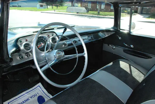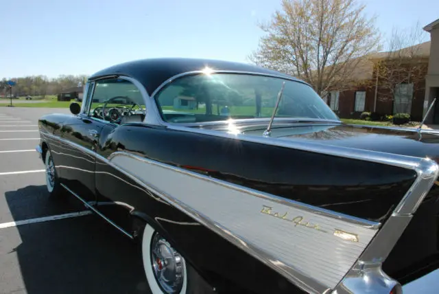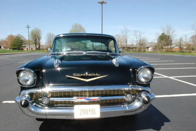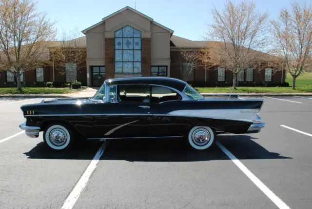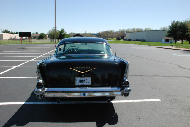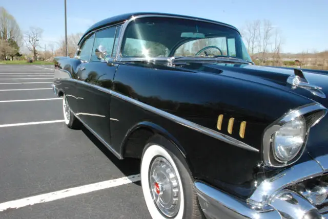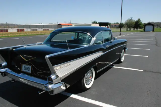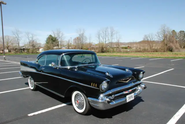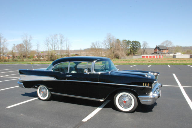 1957 Bel Air 2-Door Hardtop. A nice older restoration of a real black with silver/black interior car in automatic. It has 4-barrel; power steering; power disc brakes; skirts; spinners and dual antenna. It has perfect interior and excellent pain and brightwork. This is an all original car except for the power disc brakes and the new B. F. Goodrich radial tires. Everything works but the Wonderbar radio and it was rebuilt. I could find no previous rust or repair damage. This car runs and drives great. Fly in and drive it home. You won't find anything this good on Ebay for this price. On Apr-14-15 at 09:25:35 PDT. seller added the following information:Phone No. 606-232-9116
