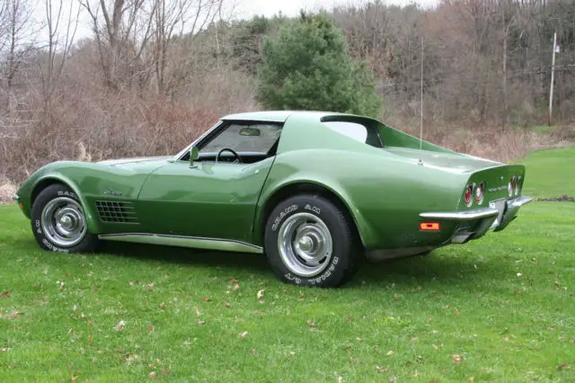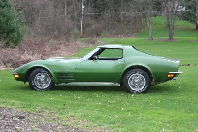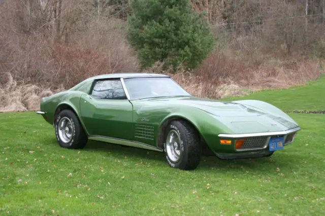 This is a original Corvette LT1. Original paint. interior and intake . Smog. This has been in my collection for about ten years I drive it every summer . It is a unrestored LT1 it drives nice does not smoke or make strange noises. I put new calipers and flex lines up front. The car was bought in Wadsworth Ohio when it was new and traded in in 73 when the gentleman I bought it from bought it. He moved to California were in spent it life from early 70's -mid 2000's when I bought it. He was unclear about the original block not being in car so that part is a mystery. I just thought the block was ruined in the first year. This car has a factory 411 rear end and I was told rock crusher trans it is the original trans the vin is cast in it and it does have the close ratio wine to it so the car was probably bought new to race. The only thing the car needs is front carpet the back is original and nice and the original wind shield has a little crack it the right corner you can not notice it with out looking but it is there. The power steering has the typical leak when parked. The Bird cage is great I took the molding around windshield inside off to look at it and it is clean. The frame is nice but does have the end cap rust issue common on this cars. The seats are very nice with no tears and door panels are nice for being original. The car needs a speedo cables so miles are not correct it shows less than 40 thousand . But do not know the true mileage. The car is as is no refunds no warranty I tried my best to describe it . I Have the right to end the action early it is for sale locally. Any Question Call Rob 330 714 7047
