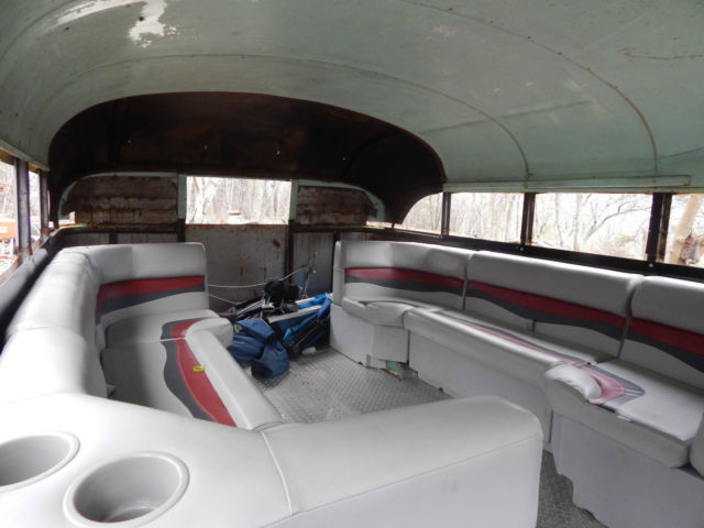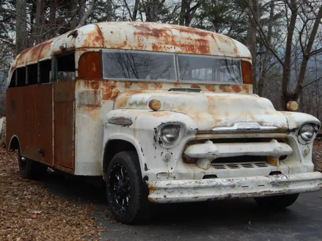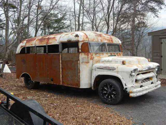 The most unique '57 Chevy you'll ever see is now on the market! It's an original 1957 Chevy Short bus that has been modified into an Attention Getting Street Rod! This is a running. driving. street legal bus that is at a point now that someone can finish customizing it to their liking. It has a "Rat Rod" look to it now. but don't let that fool you about the time. money. and quality that has been put into it. - The original 6 cylinder and standard transmission have been replaced with a low mileage 454 BBC and a Turbo 400 automatic transmission that was built for a motorhome. - All bolt on engine components. i. e. . radiator. battery. starter. alternator. Edelbrock 4 Barrel carburetor. breather. B&M shifter. etc. were purchased brand new. - I shortened the back of the bus by 42" to make it symmetrical from front to back. - The roof has been chopped approximately 11 inches. - The original dually rear end has been replaced with a 14 bolt single wheel rear end. - It has 18x8" Fuel wheels on the front. and 20x12s on the rear. - The original side body metal was removed and replaced with 14 gauge sheet metal. - It has diamond plate on the floor of the interior and pontoon boat seats down each side. The interior setup is more like a limo than a school bus. There is still plenty to be done to this bus. but I drive it regularly just like it is! I really didn't have any intentions of selling it when I started building it. but I'm looking to move on to something else. It's at a real good point for someone else to finish it to their liking. **I reserve the right to end this auction early. as this vehicle is for sale locally. and I will accept offers for immediate purchase at any time. **On Apr-12-15 at 19:37:24 PDT. seller added the following information: The title to this bus was lost years ago. so it will be sold with a Bill of Sale.