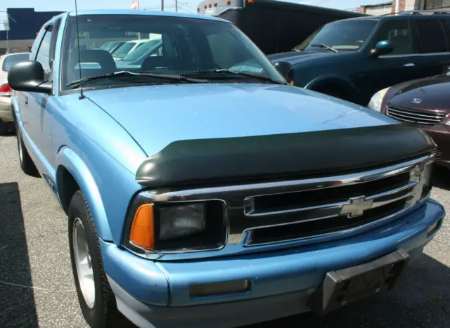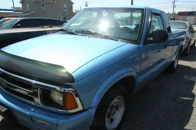 GOOD DAY. OR SALE/BID IS A SUPER CLEAN. CARFAXED CLEAR. 1997 CHEVROLET S-10 WITH AN EXTENDED CAB. THIRD DOOR AND A JUMP SEAT. FLAWLESS INTERIOR. ODOR FREE. FIRST MAY I SAY THAT THE PICTURES ARE NOT UP TO SNUFF DUE TO LOCATION OF THE TRUCK. DONT LET THAT SWAY YOUR BIDDING. FOR I AM HAVING A SLIGHT SCRAPE REPAIRED ON THE RIGHT SIDE OF THE BED AS YOU CAN SEE. THE BLEND WORK WILL BE SMALL AND NOT HARM THE INTEGRITY OF THE FINISH. THIS IS A BEAUTIFUL LITTLE WELL MAINTAINED TRUCK WITH GREAT APPEAL BECAUSE OF ITS HISTORY OF RELIABILITY. THE 4 CYCLINDER 5 SPEED PROVIDES EXCELLENT SERVICE AND GREAT MPG. HAS BED LINER AND HYDRAULIC ASSIST LOCKING CAP WITH FOUR LIKE NEW MATCHING TIRES ON ALLOY WHEELS. CHEVROLET MAINTAINED AND EVERYTHING WORKS AND RUNS GREAT. CERTAINLY FLY IN AND DRIVE THIS TRUCK HOME. QUESTIONS PLEASE? 443-326-8853. AIRPORT PICK UP NOT A PROBLEM On Apr-19-15 at 15:20:22 PDT. seller added the following information:SOMEONE ASK ME ABOUT THE PAINT FINISH ON THIS TRUCK. THE PAINT FINISH IS PERFECT. HE SUN GLARE AND THE SPRING POLLEN GIVES THAT WIERD LOOK. EAUTIFUL PAINT. ICE TRUCK