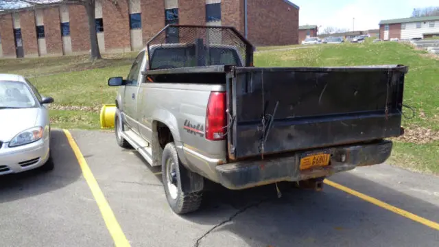 You are bidding on a 1998 Chevrolet 4 x 4 pickup with an 8 foot Meyers snow plow and an 8 foot dump box. This truck was purchased new by the school and has 37787 miles on it. It runs good and been in service this school year. It is a 350 v8. has very good tires. It is wired for 2 batteries but only has one. It does have rust. please see the pictures. The floor is rusted out of the dump box and it has a sheet of plywood in it. The drivers seat is well worn. The plow and the dump box both work. I am selling surplus school equipment for Greater Southern Tier Board of Cooperative Services (GSTBOCES). All items are located at the Bush Campus 459 Philo Road. Elmira. NY 14903. They may be seen at this location and will be paid for and picked up at this location. All items are sold "as is where is" with no warranty expressed or implied. Please email with any questions or to set up a time for inspection.