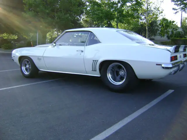1969 SS/RS Pro Street Camaro. 1970 LS6 454/450 HP Engine with 10:1 compression ratio. The block is a 512 casting nimber with GM oval port heads. Comp Cams 11-213-3 kit made up of Cam/Lifters/Valvetrain-Hydraulic flat tappet. dv. Duration 292 int. /292 ext. . ift . 550 int. /550 exh. Weiand Stealth dual plane intake. olley 750 Double Pumper. olley mechanical fuel pump. ooker Headers. 3 inch Flowmaster exhaust which exits out behind rear tires. 4 row radiator with clutch fan and shroud which runs at 185 degrees all day long. Muncie M21 4 speed with Hurst Competition shifter. Rearend is a 9 inch with 31 spline axles with 4:11 Posi Gears. Front suspension is stock Camaro with power steering. ower disc. brakes. Rear suspension is a 4 link with Koni coil over shocks. Subframe connectors tie the front and rear suspension together. Paint and body are in excellent condition with straight panels and flat paint. There is a small scratch on the driver door. Interior is stock comfort weave front seats with vinyl covered panels in the rear. Factory dash and console with Auto Meter gauges. Headlights have been upgraded to Detroit Speed and Engineering electric units. Fuel cell is 16 gallon. Front tires are B. F. Goodrich Radial T/A P215/65R15 on 15 x 7 Torque Thrust D rims. Rear tires are Hoosier Pro Street Radial 29 x 18. 5 on 15 x 14 Torque Thrust D rims. The rear wheel wells are the factory length and have not been stretched to fit the tires and have the factory wheel moldings. This car runs and drives great and has Approx. 6000 miles since being built. Car sold as is with no warranty. No trades.