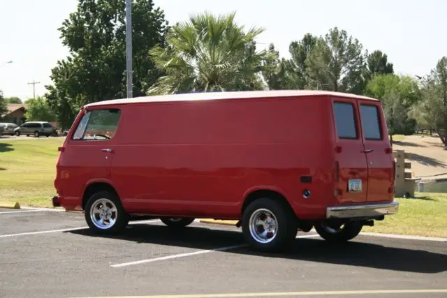 Runs and drives great! About 90% complete with just small refinements and fixes. Lots of new parts in the last year. rebuilt two barrel carb. ew alternator. uel pump. ater pump. EI ignition. lugs wires. thermostat . aluminum radiator. clutchfan. tires and wheels. brakes and wheel cylinders and master cylinder. front brake lines. front leaf spring bushings. tie rod ends. classic style digital radio. backup camera. steering wheel. bucket seats. carpet. console. volt regulator. hot rod mirrors. windsheild gasket. door gaskets. tail light lens. alpine speakers. chrome engine kit i. e valve covers. iming cover. oil pan and air cleaner. new battery. Paint looks good till you get about 8 feet away. All gauges work with the exception of the battery. All lights working except back up lights. All new hoses i. e radiator and heater hoses. Not much left to do to this van most of the expensive is done.