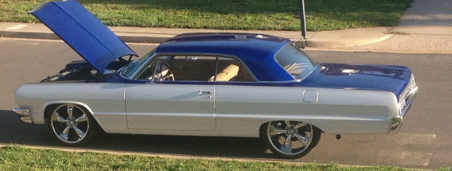 This is a custom 1964 impala 2 door hard top classic with full tan leather interior new motor 406 this is a very nice car with all new chrome and new paint 2 tone blue and white 22"rims back 20"rims in front text or call me for info at 573-578-9635 might be at work but will get back with you thank you happy bidding