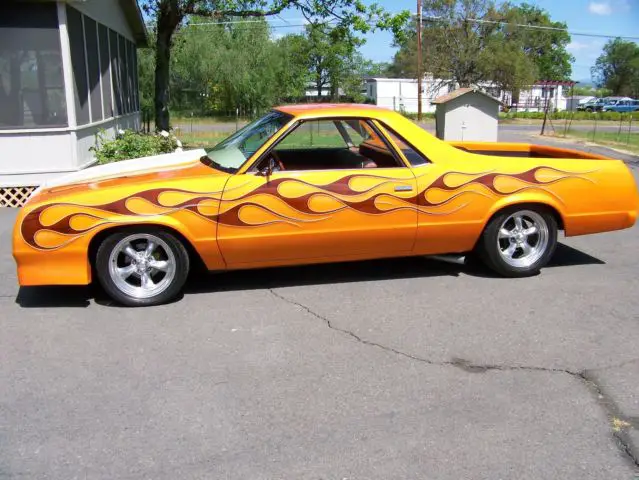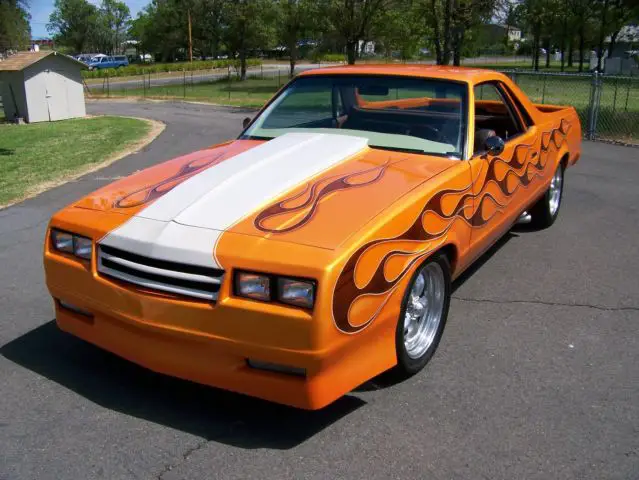 THIS EL CAMINO HAS HAD A TON OF MONEY INVESTED. ULL CUSTOM. UNS STRONG. RIVES NICE. ILL MAKE A GREAT CRUISER AT A VERY AFFORDABLE PRICE. AS POWER STEERING AND POWER DISC BRAKES. 50/350HP. URBO 350 TRANS. 0 BOLT POSI. 7 AMERICAN RACING WHEELS . AS BEEN LOWERED 4 INCHS. EAR FRAME HAS BEEN NARROWED AND NOTCHED FOR WIDER RUBBER. AS STEEL COWL HOOD. ULL MOULDED TAILGATE. ULL . EARL CANDY PAINT WITH WOOD GRAIN FLAMES CUSTOM INTERIOR. INTED GLASS. WOULD CONSIDER THIS CAR TO BE 75% DONE . ILL NEED WIPER MOTOR. INTAGE AIR. ND DOOR ARM RESTS TO BE 100%. ALL 541 601-1152 FOR MORE DETAILS. AVE CLEAN CLEAR TITLE NO BRANDS OR SALVAGE THIS IS THE FREAKY TIKI THAT WAS BUILT ON CAR WARRIORS . OMEONE HAS PAINTED A CREAM STRIPE OVER THE HOOD. UT HAND STRIPED TIKI ON TAIL GATE REMAINS ALONG WITH THE REST OF THE GRAPHICS AS SEEN ON TV(VIDEO ON U TUBE SPEED TV CHANNEL CAR WARRIORS)