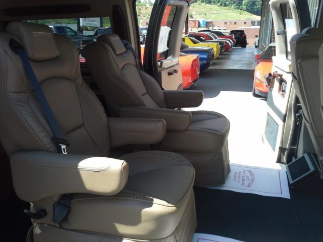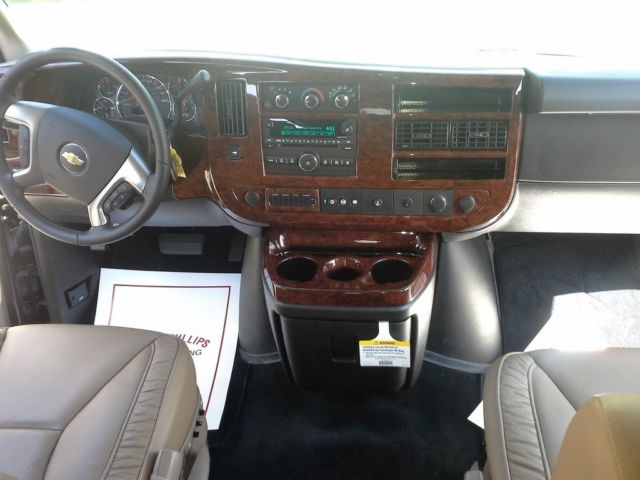 This is a brand new van with less than 1. 00 miles. it has never been owned or titled. We bought this van from the original dealership that was located in Georgia. It had an original retail of $65. 00 dollars!Below is a list of options the van has but please feel free to call us with any questions you may have about the van. Pretty much all of the miles on the van have been put on it by us. Driver Information Center. eather Interior. arpeted Floor. ll Power Options. ir Conditioning with Rear Heat and Air. ilt Steering. ruise Control. M-FM Stereo. D Player. M Radio. ux Input. oodgrain Trim. VD System. ower 3rd Row Seat. inted Windows. loor Mats. 2 Volt Power Outlets. nterior Auto Dimming Mirror. Wheel Disc Brakes. djustable Seat Belts. Point Rear Seat Belts. actory Alarm with Keyless Entry. ront Airbags. raction Control. uto Headlamps. n-Star. itch. ear-View Camera. luminum Wheels. unning Boards. ucket Seats. ear Defrost. ap Lights. anity Mirrors. wightphillipsauto. com/2013-chevrolet-express-conversion-van. html336-838-1951