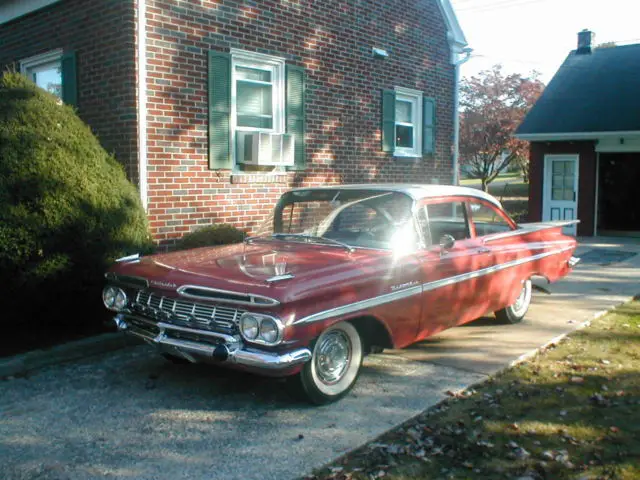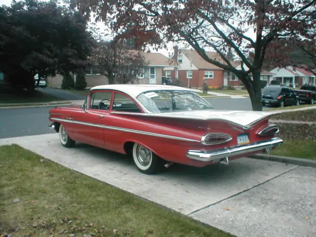 1959 Chevrolet Bel Air 2-door sedan. All origonal. Cameo coral and white. Car has a little over 61. 00 miles. 6cyl. automatic. Car is in exllent condition. Garaged its whole life. The negatives are the headliner is a little faded and the windlace is a little worn. small spot on the quarter where the paint is a little bubbled. With that being said it is an all origonal survivor with some minor scratches here and there. buy a very nice car. Transmission was rebuilt as was the radiator recored this year. Serious bidders only. Dont waste my time or yours!