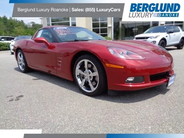 View Our Other Listings | Contact Us | Print this listing 4LT Package with only 8K MILES!!!!! LOOK!Berglund Luxury Roanoke5000 Franklin Rd. Roanoke. VA 24014Call Us Today(540) 344-6284Ask ForBen Everest 276. 698. 9702 & Rob Altier 973. 975. 2709Ask Us A Question Vehicle DetailsYear: 2009Make: ChevroletModel: CorvetteVIN: 1G1YY26W095108890Stock Number: R1369AMileage: 8567Transmission: AutomaticEngine: 8 Cylinder. 6. 2 LExterior Color: RedInterior Color: BlackTitle: Clear Description2009 Chevrolet Corvette Features & Options12V Power Outlet 22-stage UnlockingABS Brakes (4-Wheel)AM/FM Stereo RadioAir Conditioning - Air FiltrationAir Conditioning - Front - Automatic Climate ControlAir Conditioning - Front - Dual ZonesAir conditioningAirbags - Front - DualAirbags - Front - SideAirbags - Passenger - Occupant Sensing DeactivationAmbient LightingAnti-Lock Braking System Anti-Lockout Feature Anti-Theft Alarm System AudioAudio - Antenna: ElementAudio Auxiliary Input: JackAuto Headlamp On/Off-Delay Auto-Dimming Body-ColorBose Stereo SystemCargo Cover CarpetCarpetingCenter Arm RestCenter ConsoleChrome Rims WheelsClimate ControlClockCompassConsole CoolantCourtesy LightsCruise controlDaytime Running LightsDriver Air BagDriver SeatDriver Side Remote Mirror Dual IlluminatingDual Sport Mirrors Dusk SensingEngine Engine Immobilizer Engine OilExterior MirrorsExternal Temperature Display Fixed HeadrestsFloor Mat MaterialFloor MaterialFog Lights FrontFront Bucket Seats Front Console With StorageFront Fog LightsFront Headrests Front Seat Type: Sport BucketFront Suspension Classification: Independent Front Wipers: IntermittentGauge ClusterHalogen Headlights Hard TopHeadlights HeatedHeated Seat Height Adjustable Includes Driver SeatInside Hood ReleaseInside Rearview MirrorInterval Wipers Lamp FailureLeather Upholstery Leather Upholstery Low FuelMaintenance Free BatteryMap LightsMemorized SettingsMirror ColorMulti-Functional Information CenterNumber Of Front HeadrestsOn*Star SystemOne-Touch Windows: 2 Open And ClosePassenger Temp. ControlPassenger's Front Airbag Perforated Upholstery Phone PowerPower Activated Trunk/Hatch Power Adjustments: 6Power Door LocksPower Driver's SeatPower Outlet(s)Power Passenger SeatPower SteeringPower Windows: FrontPower windowsPremium Sound System Push-Button StartRadial tiresReading Lights Rear DefoggerRear DefrosterReclining SeatsRemovable RoofSeat Position MemorySeatsSecurityStability Control Stabilizer Bar(s): Front And RearSteering Wheel Audio ControlsSteering Wheel Mounted ControlsSuspensionTachometerTilt Steering Wheel TintedTraction ControlTrip OdometerVanity MirrorVanity Mirrors Variable Power-Assisted SteeringWarnings And RemindersWindows Additional Photos Warranty InformationAll new vehicles come with a Full-Factory Warranty. Used vehicles may have a Remaining-Factory warranty. please contact for the Warranty details specific for this vehicle. Terms & ConditionsWhile every reasonable effort is made to ensure the accuracy of this information. we are not responsible for any errors or omissions contained on these pages. Please verify any information in question with Berglund Luxury Roanoke. About UsBerglund Luxury Roanoke is the luxury car dealer you can count on!Berglund Luxury Roanoke. formerly known as Crossroads of Roanoke. has a strong and committed sales staff with many years of experience satisfying our customers' needs. Feel free to browse our inventory. request more information about vehicles. schedule service. set up a test-drive or inquire about financing! Give us a call at: (888) 920-8897We have been family owned and operated for more than 35 years. proudly offering a vast selection of models from some of your favorite luxury brands. including Jaguar. Land Rover. Infiniti. Mercedes-Benz and Volvo. At Berglund Luxury Roanoke. we proudly serve customers from Roanoke. VA. as well as those from Christiansburg. Blacksburg. West Virginia and Charlottesville! Should you have questions. or require assistance in any way. please feel free to contact us directly (888-920-8897). give us a call or stop by our dealership. You can easily find us at 5000 Franklin Rd Roanoke. VA 24014. close to Walmart and Outback. We look forward to assisting you with all of your luxury automotive needs!See our other listings