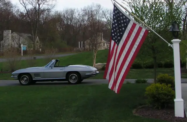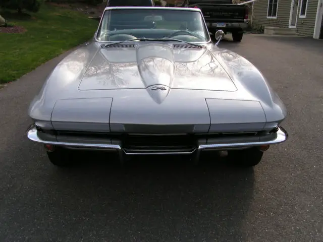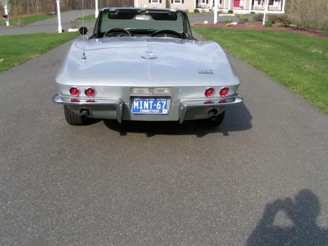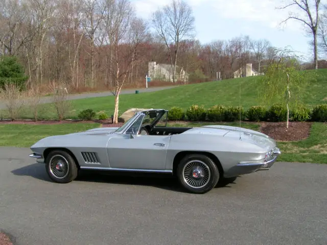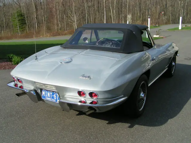 This a very nice 67 327 (66 block) Corvette Convertible 327 4 speed with PS. Paint is new. Black Convertible top is new. Black door panels are new. seats have no tears just minor wear. the dash pad is very good condition. Steering wheel is very nice. Original shifter in place. The car runs great and is fun to drive. the 4 spd. trans shifts great and the clutch is right on. Brakes are good. steering good. Just a great running car. This is not an NCRS trailer car. it is a nice driver . (very nice. ) The bird cage has no issues. the frame has only surface scale but it is very good. It has Bolt on wheels with nice Perrelli radials with very little wear. Trim tags states silver/black. Looks like the car was painted blue at one time. Was tapped in the left rear but looks good. Get ready for the 1967 50th Anniversary. Like all the others once they hit 50 years old . am sure this value will continue to rise.