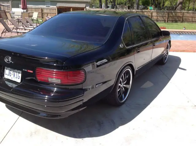 One of kind 96 Impala SS with a brand new aluminum GM complete Crate engine LS3 . 525hp . professionally installed at RestoMod in KC Mo. he engine has about 300miles on it . it has a warranty for 2 years or 24. 00 at any Chevy dealers in the country . just the engine installed was over $11. 00 . ceramic coated hooker long tube headers . new 2. 5" exhaust with Flowmasters . aluminum radiator . everything under the hood is new . The car has been lowered 1. 5" to give the perfect look . transmission was rebuilt about a year a go. interior in good condition ( everything works ) and cold AC Brand new $6. 00 paint job with no scratches . no dents . Perfect . nbsp;This car is fast and very reliable with a warranty. can be driven every day. over $38. 00 in receipts . for any questions feel free to contact me 816-726-1280