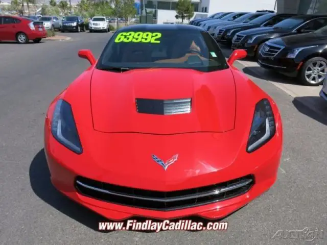 Brandon Ahlquist (702) 278-2728 993 Auto Show Drive Henderson Nevada 89014 2014 Chevrolet Corvette Stingray Coupe Vehicle Information VIN: 1G1YF2D77E5123155 Stock: P2442 Mileage: 12. 76 Color: Flame Red Trans: Automatic Engine: 6. 2L V8 16V MPG: 17 City / 29 Highway Drivetrain: RWD Description FUEL EFFICIENT 29 MPG Hwy/17 MPG City! CARFAX 1-Owner. ONLY 12. 69 Miles! Navigation. Heated/Cooled Leather Seats. iPod/MP3 Input AND MORE! KEY FEATURES INCLUDE Leather Seats. Navigation. Heated Driver Seat. Cooled Driver Seat. Back-Up Camera. Premium Sound System. Satellite Radio. iPod/MP3 Input. Onboard Communications System. Aluminum Wheels. Keyless Start. Dual Zone A/C. Heated Seats. Heated Leather Seats. Heated/Cooled Seats. MP3 Player. Keyless Entry. Remote Trunk Release. Steering Wheel Controls. Heated Mirrors. EXPERTS ARE SAYING Edmunds. com's review says 'Comparison shopped against the likes of the upcoming BMW M4. Mercedes-Benz C63 AMG or Porsche Boxster or Cayman. the Corvette Stingray promises dominating performance and competitive levels of refinement. '. Great Gas Mileage: 29 MPG Hwy. Fuel economy calculations based on original manufacturer data for trim engine configuration. Please confirm the accuracy of the included equipment by calling us prior to purchase. Options and Standard Features Options Front Airbags Side-Impact Airbags Theft-Deterrent & Security System Universal Home Remote 8-Inch Diagonal Color Touchscreen 8-Way Adjustable Heated/Vented Seats Am/Fm/Mp3 Audio System Auto-Dimming Frameless Rearview Mirror Auxiliary Input Jack Bluetooth Streaming Audio Capability Bose Advanced 10-Speaker System W/Bass Box Chevrolet Mylink Capability Cruise Control W/Set & Resume Driver Seat/Mirror/Steering Column Memory Dual-Zone Automatic Climate Control System Head-Up Display Illuminated Visor Vanity Mirrors Navigation System Power Express-Down/Up Windows Power Programmable Door Locks Power Tilt/Telescopic Steering Column Push Button Start Rear Vision Camera Satellite Radio Capability Sd Card Slot & Usb Ports Front Intermittent Windshield Wipers Heated Power Exterior Mirrors Keyless Access 4-Wheel Anti-Lock Disc Brakes All-Speed Traction Control System Power Speed-Sensitive Rack & Pinion Steering Stabilitrak & Active Handling Stability Control Basic Information VIN Number: 1G1YF2D77E5123155 Stock Number: P2442 Model Year: 2014 Make: Chevrolet Model: Corvette Stingray Style Name: Coupe Vehicle Trim: 3LT Body Type: Coupe Vehicle Type: Coupe Interior Color: Brown Exterior Color: Flame Red Engine Engine Description: 6. 2L V8 16V Fuel Type: Gas Fuel Induction: Direct Gasoline Injection Valves Per Cylinder: 2 Aspiration: Normal MPG Automatic City: 17 MPG Automatic Highway: 29 DriveTrain Transmission: Automatic Drive Train Type: RWD Differential Limited Slip: Mechanical Driven Wheels: Rear-Wheel Wheels Rims: Silver Aluminum Suspension Independent Suspension: Four-Wheel Stabilizer Bar: Front And Rear Instrumentation Clock Compass External Temp Low Fuel Level Tachometer Trip Computer Roof and Glass Front Wipers: Variable Intermittent Rear Defogger Sunroof: Manual Composite Privacy Glass: Light In Car Entertainment Audio System: Siriusxm AM/FM/Satellite Premium Brand: Chevrolet Mylink Speakers: 9 Premium Speakers: Bose Antenna Type: Window Grid Seats Drivers Height: Power Drivers Power: 6 Passenger Height: Power Passenger Power: 6 Seating Capacity: 2 Front Seat Type: Bucket Upholstery: Leather Convenience Cruise Control Windows: Power Windows Steering Power: Speed-Proportional Electric Power Steering Steering Adjustment: Tilt And Telescopic Mirrors: Power Remote Power Door Locks Center Console: Full With Covered Storage Cupholders: Front Door Pockets: Driver And Passenger Power Outlets: 2 Remote Trunk Release: Power Satellite Communication: Onstar Directions & Connections Comfort Air Conditioning: Automatic Air Filtration: Interior Air Filtration Trunk Lights: Cargo Area Light Center Console Trim: Metal-Look Dash Trim: Metal-Look Mats: Carpet Front Reading Lights: Front Shift Knob: Leather/Metal-Look Steering Wheel Trim: Leather Vanity Mirrors: Dual Illuminated Vanity Mirrors Features Bumpers: Body-Colored Door Reinforcement: Side-Impact Door Beam Safety Driver and Passenger Airbag ABS: 4-Wheel Stability Control Headlights Auto Delay: Auto Delay Off Headlights Dusksensor: Dusk Sensing Daytime Running Light Front Headrests: Fixed Engine Immobilizer Door Reinforcement: Side-Impact Door Beam Side Airbag Stability Control Doors Rear Door Type: Liftgate Dimensions Front Head Room: 37. 9 Inches Front Hip Room: 53. 7 Inches Front Shoulder Room: 55. 2 Inches Front Leg Room: 43. 0 Inches Luggage Capacity: 15 Cu. Ft. Length: 176. 9 Inches Width: 73. 9 Inches Height: 48. 8 Inches Wheelbase: 106. 7 Inches Curb Weight: 3. 98 Lbs. Message Contact Findlay Cadillac 993 Auto Show Drive Henderson Nevada 89014 View Map Ask for:Brandon Ahlquist Direct:(702) 278-2728 Main:(702) 430-4311 Contact: Contact Us Apply Now Secure Credit Application Applying for a vehicle loan online is one of the quickest and easiest application methods. Our secure application is easy to complete. all you need are a few personal and employment details. Credit Application Directions to Dealer Contact Us Terms Placing a Bid: Your bid constitutes a legally binding contract to purchase this vehicle. Please do not bid if you're not seriously interested or financially able to purchase this vehicle. Please read eBay's User Agreement Findlay Cadillac reserves the right to. Obtain and verify the registered information of all users who bid on this auction. Cancel any and all bids at our discretion. or end the auction early if necessary. Bidders Age: You must be 18 years of age or older to Bid. Special eBay Bid Retraction Rules: Please read eBay's "Retracting a Bid" If you place a bid before the last 12-hour period of the auction: You may retract that bid before that last 12-hour period but only for exceptional circumstances. You will not be allowed to 