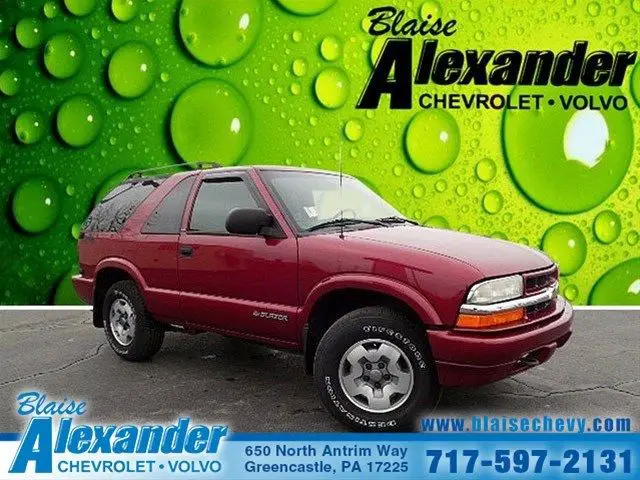 View Our Other Listings | Contact Us | Print this listing LS 4. 3LBlaise Alexander Family Dealerships10 Alexander DrMuncy. PA 17754Call Us Today(888) 462-6518Ask Us A Question Vehicle DetailsYear: 2003Make: ChevroletModel: BlazerVIN: 1GNCT18X43K155548Stock Number: GC0585AMileage: 150922Transmission: UnspecifiedEngine: 6 Cylinder. 4. 3 LExterior Color: RedTitle: Clear Additional Photos Warranty InformationThis vehicle is being sold as is. where is with no warranty. expressed written or implied. The seller shall not be responsible for the correct description. authenticity. genuineness. or defects herein. and makes no warranty in connection therewith. No allowance or set aside will be made on account of any incorrectness. imperfection. defect or damage. Any descriptions or representations are for identification purposes only and are not to be construed as a warranty of any type. It is the responsibility of the buyer to have thoroughly inspected the vehicle. and to have satisfied himself or herself as to the condition and value and to bid based upon that judgement solely. The seller shall and will make every reasonable effort to disclose any known defects associated with this vehicle at the buyer's request prior to the close of sale. Seller assumes no responsibility for any repairs regardless of any oral statements about the vehicle. Terms & ConditionsDeposit: A Deposit of $500 must be paid within 24 of auction close. Payment: Items will not be available for pickup or shipping until full payment is received and cleared by our local bank. Buyer has 5 days to pay. Warranty: Equipment is covered by manufacturer's warranty only. Returns: If you are not satisfied with your item upon delivery. please notify us immediately. You are responsible for return shipping/delivery. Availability: We reserve the right to remover this listing due to onsite sales. See our other listings