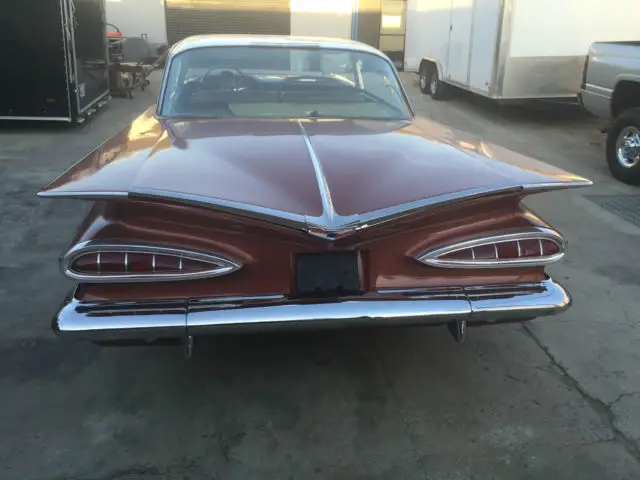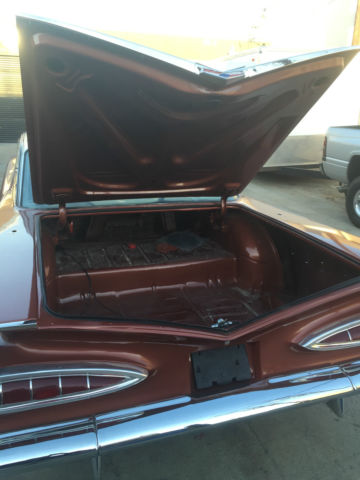 59 Impala Running Project Car!!! Relisted due non paymentBrakes have been gone thru and are workingCar runs and drives but the engine has been rebuilt with a big cam so it needs a stall converter or a stock cam or drive it as is (low Vacum)All trim has been high polished and bumpers are triple platted.All Glass is complete but needs to be redone. needs a front windshieldBody and paint have been completed and all it needs is a final wet sand and buff After its completely built.Trunk Floors have replaced... Floors were patched by a previous owner which is good for a street car. If you're looking for a show car New floors are recommended. All interior is complete and needs to be redone.Pics show the car as it sits. i will replace the floor for an extra fee for the new buyer.