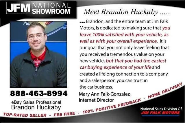 We are proud to have 100% eBay feedback plus no additional fees!! Most of our auctions end early with a phone call. If interested in this vehicle, r any of our vehicles, lease call Brandon Huckaby 888-463-8994