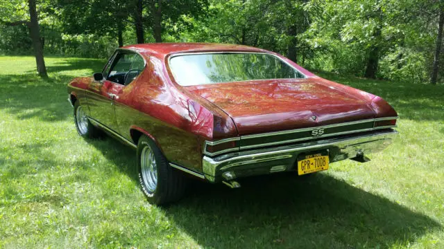 This true SS car has been driven 950 miles since a complete frame off nut and bolt restoration and is in better than new condition. The frame was sandblasted and re-coated. Anupgraded tubular suspension was added including front and rear sway bars, PP 14:1 power steering box, llstainless steel brake and fuel lines, wheel power disc brakes and e-brake. All supported by 15" Cragar SS rims,BF Goodrich Radial T/A tires and the original 12 bolt posi-rearend with 4:56 gears.