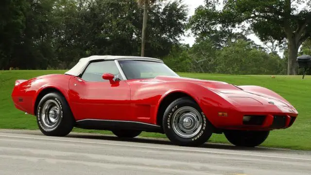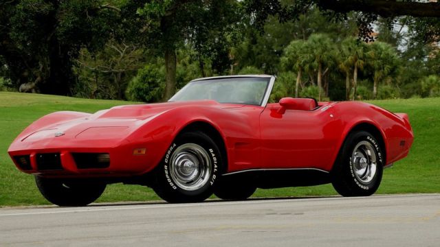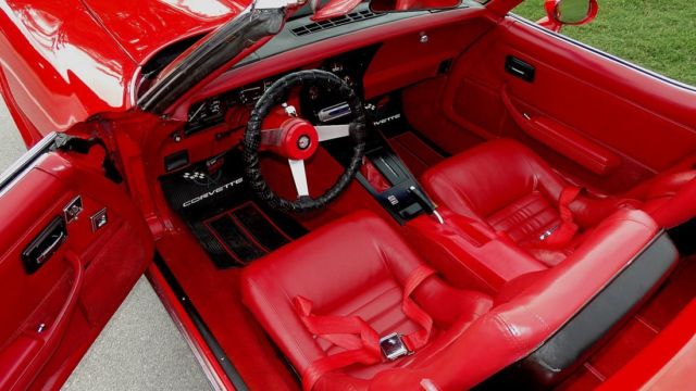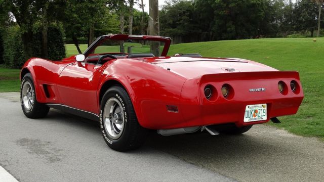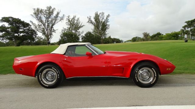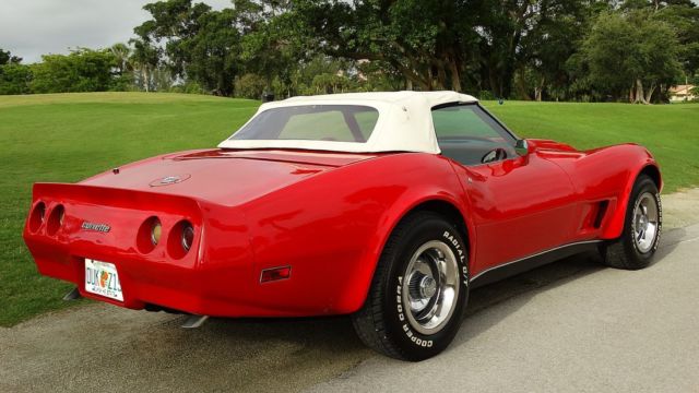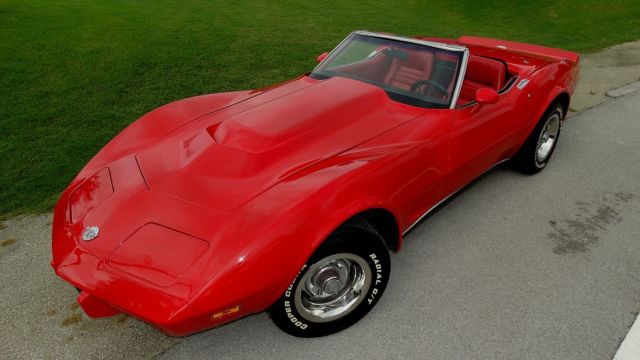 THIS IS A 1978 CHEVROLET CORVETTE CONVERTIBLE. NOT A FACTORY CONVERTIBLE BUT AS A CORVETTE CONVERTIBLE CAN BE. DONE JUST LIKE A FACTORY ONE. BOOT RELEASES THE SAME WAY AND OPERATES JUST LIKE A FACTORY ONE. MIGHT EVEN CALL IT A RETRO CORVETTE CONVERTIBLE. NOT THE FACTORY MOTOR. IT HAS A 350 CUBIC INCH V/8 ENGINE AND FULLY AUTOMATIC TRANSMISSION. I HAVE TAKEN A PICTURE OF THE ENGINE NUMBER AS IT IS NOT THE MATCHING NUMBER. THE INTERIOR IS STANDARD AND IN REALLY NICE CONDITION. THE PAINT IS EXCEPTIONAL AND BOTH ARE DONE IN RED. THE INTERIOR HAS BEEN REDONE AT SOMETIME AND DONE WELL. COMES WITH THE STANDARD WHITE CONVERTIBLE TOP THE CAR RUNS STRONG AND SHIFTS PERFECTLY. A EXCEPTIONAL RUNNING CORVETTE. HAS FACTORY A/C AND POWER WINDOWS WITH AN AFTER MARKET AM FM STEREO WITH BUILT IN CD. A VERY RARE RIDE TO SAY THE LEAST. IF YOU KNOW THE C3 SERIES CORVETTE YOU KNOW THAT THE 78 WAS A 25 YEAR ANNIVERSARY EDITION AND THEY DID NOT MAKE A FACTORY CONVERTIBLE AFTER 1975 WHICH MAKES IT RARE. I HAVE SEEN A LOT OF 78 VETS BUT HAVE ONLY SEEN ONE OTHER CONVERTIBLE. GREAT WEEK END LOCAL SHOW CAR AND A GREAT CONVERSATION PIECE. WOULD ALSO MAKE A GREAT PARADE CAR WITH THE HARD BOOT. THIS MAY OR MAY NOT MAKE IT TO THE END TO OF THE AUCTION WITH THE RIGHT OFFER SO WE DO RESERVE THE RIGHT TO END THE AUCTION EARLY. SO CALL.