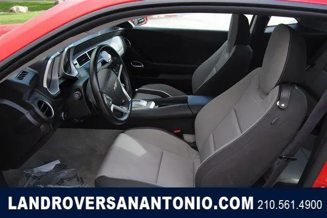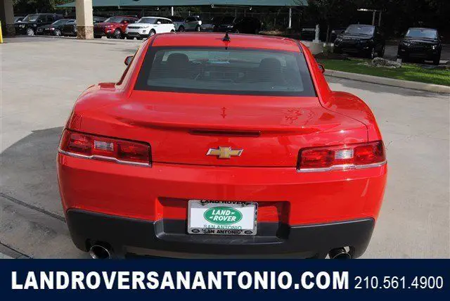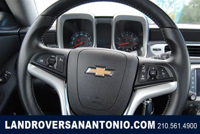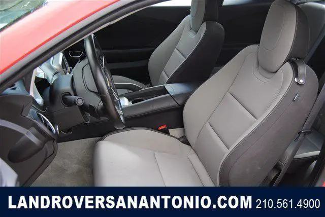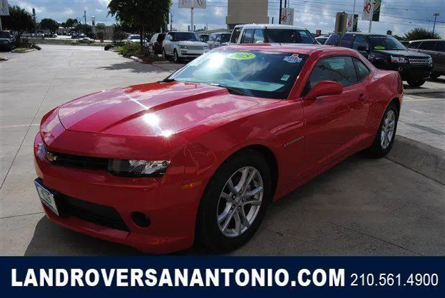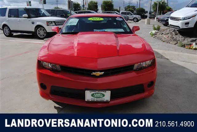 Calling all enthusiasts for this sleek and seductive 2015 Chevrolet Camaro LT. Take pleasure in the buttery smooth shifting from the Automatic transmission paired with this high performance Gas V6 3.6L/217 engine. Boasting an astounding amount of torque, his vehicle begs for someone to love it! It is well equipped with the following options: Dead pedal, river, afety belt pretensioners driver and front passenger, ntenna, nStar and SiriusXM Satellite Radio fin-type, lack, ocated on roof (Body-color when (WRS) RS Package is ordered.), ir conditioning, ingle-zone manual, runk emergency release handle, ower outlets, auxiliary 1 located in center console storage area and 1 located at front of center console, oldings, ody-color lower rocker, olding, lack roof ditch, ir bags, ual-stage frontal, nd thorax side-impact, river and front passenger, nd head curtain side-impact, ront and rear outboard seating positions includes Passenger Sensing System (Always use safety belts and child restraints. Children are safer when properly secured in a rear seat in the appropriate child restraint. See the Owner's Manual for more information.), eadlamps, alogen composite with automatic exterior lamp control. Find excuses for road trips in this fabulous and fun-loving Camaro. Visit Land Rover of San Antonio located at 13660 IH -10 West, an Antonio, X 78249 for a hassle-free deal!