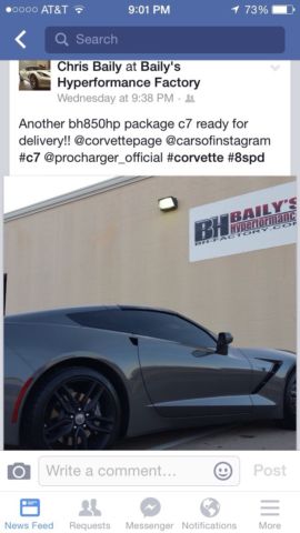 FOR SALE: 2015 PROCHARGED C7 3LT 8 SPEED 850HPALL WORK DONE BY BAILY’S HYPERFORMANCE FACTORY IN DALLAS, X. D-1 PROCHARGER, AM, EADS, EADERS, -PIPE WITH CAT DELETE, NOW METH INJECTION, ELECTABLE EXHAUST AND A SET OF HOOSIER DR’S MOUNTED TO OEM REPLICA WHEELS. FACTORY WARRANTY IS STILL INTACT FOR EVERTHING ELSE. I HAVE ALL THE FACTORY PARTS THAT WILL GO WITH THE CAR IF THE BUYER EVER WANTS TO CONVERT IT BACK TO STOCK. IT HAS DAMN NEAR EVERY OPTION POSSIBLE.PURCHASED IN OCTOBER OF 2014. CAR HAS 6,200 MILES. CAR IS IMMACULATE. ALSO COATED WITH MODESTA CERAMIC COATINGS. CLEAR PAINT PROTECTION APPLIED TO THE FRONT BUMPER. YOU CAN FIND ALL OF THE FACORTY INFO AND UPGRADES IN THE PICTURES. $72K OBO. PLEASE MESSAGE ME FOR DETAILS. SERIOUS INQUIRES ONLY…