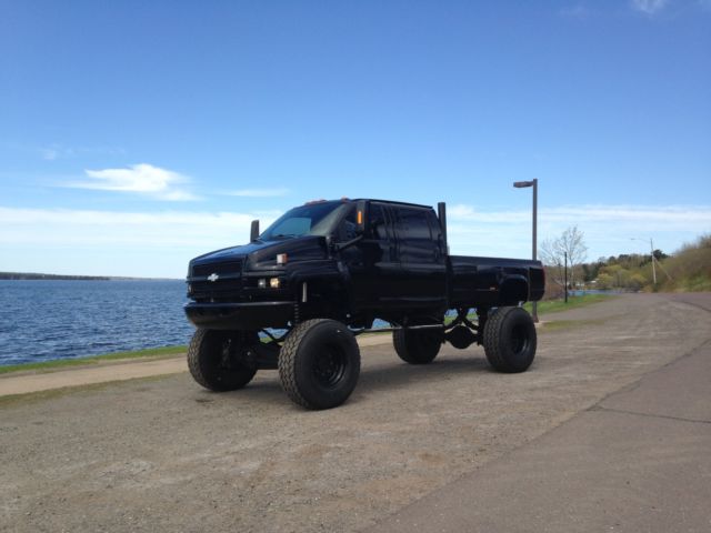 Custom built 2005 Chevy C4500 4X4 diesel has fab tech coil over front shocks, ox rear shocks and Atlas rear springs. It stands just under 10 ft. tall sitting on 425 floats. Serious buyers please call or text Willie for details before bidding at (906) 201-0146