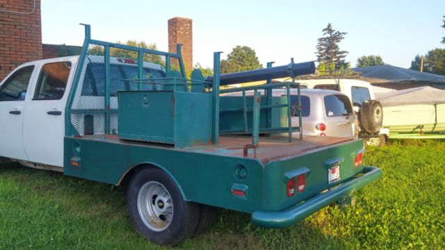You are bidding on a used utility flatbed that came off of a 2011 Chevrolet 1 ton dually truck. This flatbed is very heavily constructed so it will need to be transported by an open chassis truck or a trailer.