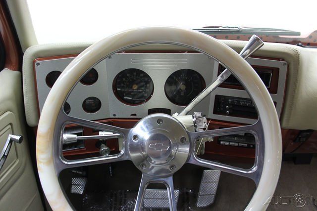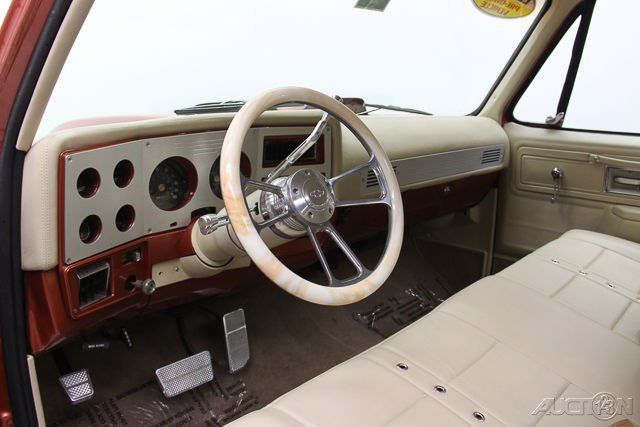 BARRETT JACKSON CAR! Here is an amazing custom built classic C-10 short bed that has undergone a very nice ground-up restoration. This vehicle was custom built as a show truck that can also be a daily driver. The truck has a very tight 350 V8, ower steering, ower brakes, utomatic transmission and air conditioning. The paint is in beautiful condition, ll rubber seals have been replaced, he truck was professionally lowered 2 front and 3 in the rear. Features four period correct custom appliance turbine style mag wheels with brand new Cooper Cobra tires. The interior was custom built by KAO Autostyling. Also features custom updated headlights, ustom billet grille and a new 3 Flowmaster exhaust system. This truck comes with over $20,000 in recent restoration receipts. NOTE: Sold AS-IS. No dealer financing.