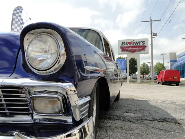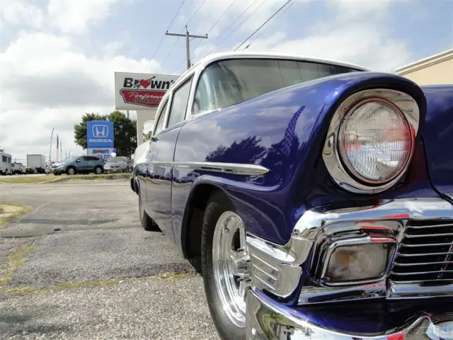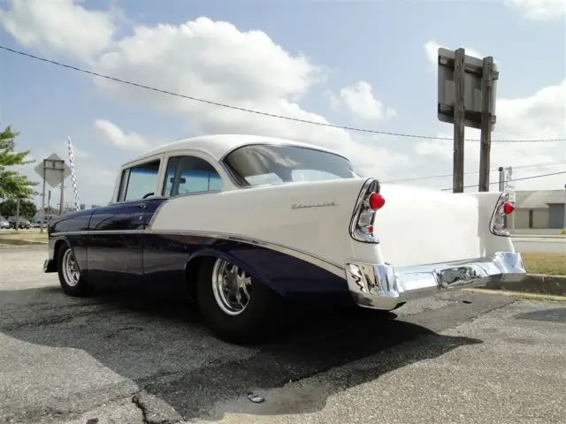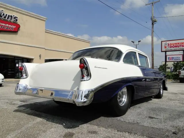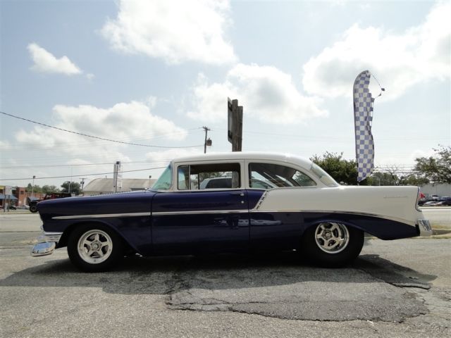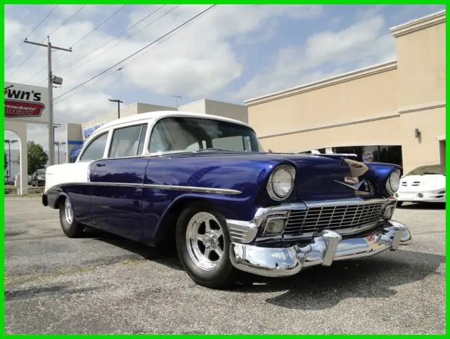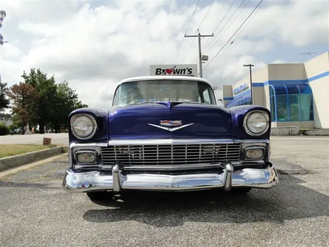 This is one of the nicest 56 Chevy's we have seen! Fresh out of the shop, his car has beautiful blue paint on the bottom and a gorgeous white with blue pearl on top. This 210 really does have the look! The interior in this car looks sharp and is also very comfortable, rapped in beige leather with ostrich accents. Also equipped with a custom leather center console with built with gauges, ccessory switches and Hurst shifter. This car sports a bored, troked and balanced 496ci big block with Edelbrock aluminum heads, olished intake and dual quad carbs. This motor has $13k in it alone! Backed by a TH400 auto trans and a narrowed 9' with 3 link suspension to accommodate the tubbed rear. This pro-street is also equipped with: Aluminum radiator Billet water pump 4 wheel disc brakes Billet Specialties wheels This 56 will not last long! Don't miss out! Questions about our vehicles Contact Our Staff at Brown's Performance Motor Cars 410-553-6211 Only Tax, ags and Processing not included. 410-553-6211 Only Tags, axes and Processing Fee additional to Brown's Price