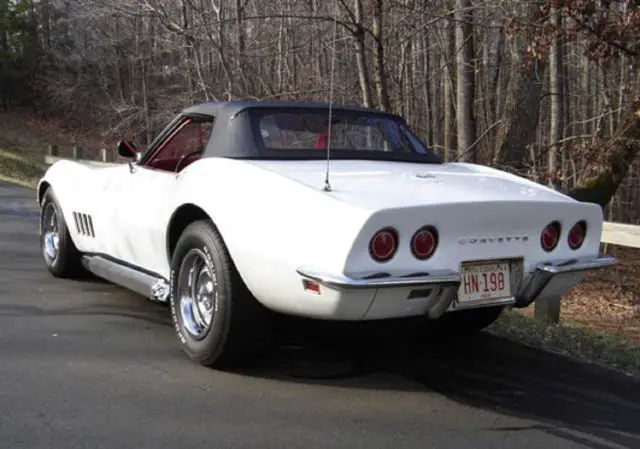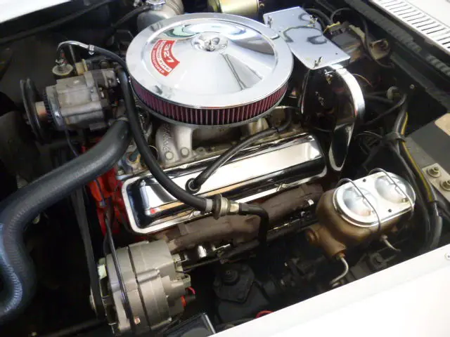 This is a very nice older restoration. Paint is near perfect. Great white/black/red color combination. It has a matching numbers 327 cu. in. 350 hp engine. Still has the original smog pump not hooked up. It is equipped with power steering and brakes. 1969 side pipes were added during the restoration. Optics work. Intake and carb are not original and don't have them. Runs and drives like new.