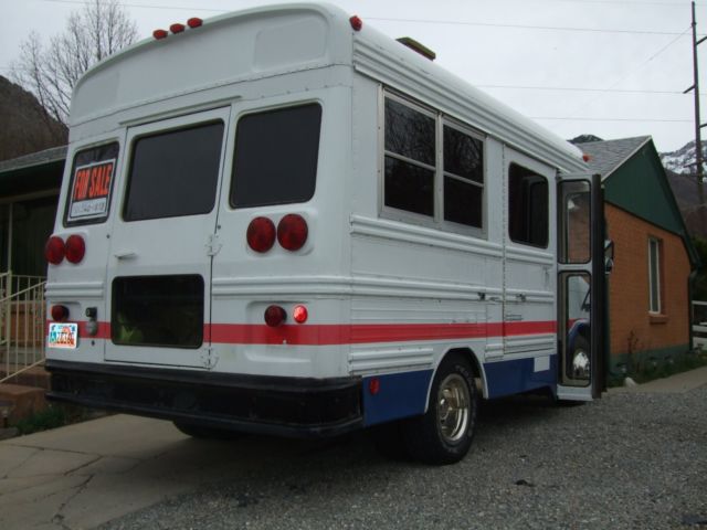 up for bid is one 1991 Chev. G-30 one ton cutaway bus--has 350 Chev. eng. with only 40,000 miles on engine and bus. Many new parts have been installed { radiator, lternator, tc.}. engine runs great.
