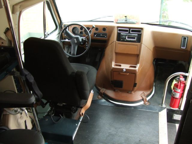 Bus has been set up for handicapped use with wheelchair powerlift, extra Ultima batteries that runs an oxygen machine, included}, nd a power electric wheelchair, included}. Has been set up with an inverter and battery doctor for additional accessories. Has Peterbilt driver,s air seat, lumbar support and all the other adjustments you can make}. Also has Kenwood am-fm cd stereo with new sound system. Bus also has rear air cond. and heat. Also is equipped with back-up camera for ease with backing.