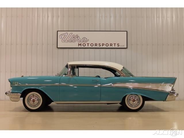 Ultra Motorsports is thrilled to offer this beautiful classic. The 1957 Chevrolet Bel Air is possibly the most iconic American classic car in history. The 57' Chevy never seems to go out of style. Quite possibly the most recognizable piece of Americana on the road today, he 57' Chevy Bel Air draws a crowd everywhere. This vehicle has received a recent NUT AND BOLT RESTORATION and presents beautifully. The exterior is perfectly finished in 57 Chevy Larkspur Blue and the body is laser straight. The paint is excellent with no runs, hips, r orange peel. The body shows no visible signs of body filler or previous repair. The chrome and trim on this car are PERFECT! Chrome and trim are such a huge part of the presentation of a 57 Chevy, nd it is the first thing everyone looks at. This car will not disappoint. The underside of this car is fit for a car show, inus a little road dust that has already been taken care of. It is very obvious this vehicle was done recently and done correctly. The interior of this car is in perfect condition. It looks brand new and shows zero visible flaws. The carpet, eadliner, nd dash are immaculate. All of the glass is in perfect condition. The car is powered by a freshly restored 283 cubic inch engine and Powerglide automatic transmission. This car runs and drives beautifully. It will take you safely and comfortably to the car shows on the weekend and certainly win you a trophy for the ride home. Perhaps the most appealing feature of this car is the correctness. This car has NEVER been hot rodded or resto modded. This is a car for the pure enthusiast. This is a car for someone who likes things just the way they were when they rolled out of the showroom in 1957.....perfect. Please contact our office (260)969-5666 or Rich (260)704-0234 for additional information, ictures, r video. We are a full service dealership and offer the highest level of service to our clients. Our staff can assist with Worldwide shipping and we offer financing through JJ Best Bank. Cars will always be an excellent investment that will continue to appreciate while you enjoy them. This doll is ready for the parade, he car show, r just loading up the grandkids for ice cream. The time to make these memories is right now.