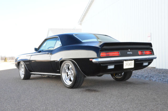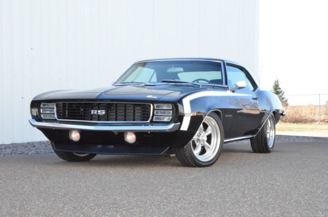 1969 Camaro RS Pro-Touring This is my personal car; I am not a dealer. This is a great pro-touring 1969 Camaro RS with a recently completed restoration; I have a stack of receipts that will be included for documentation. Engine. Transmission. Fuel and Exhaust• 1969 350 motor – completely rebuilt with less than 200 break-in miles: mild cam. new alternator. new water pump. new belts and hoses. new spark plugs/ spark plug wires. new Holly carb. new distributor and coil. new min-starter. new fuel pump and filter. new intake gasket. • Tremac T-5 transmission – shifts perfect• Long tube headers with 2 1/2 inch custom exhaust (sounds incredible)• New fuel tank and fuel lines front to back Suspension and Brakes• 4 Wheel disk brake upgrade• New master cylinder. new booster• New brake lines• Power Steering• New ball joints. new shocks. new springs (lowering) • 10 Bolt Camaro rear end with 3. 73 gearsBody and Electrical• Black paint with white Hockey stripe (cleared over)• New quarters. new trunk pan. new 1 piece floor pan. new inner fenders. new hood. new lower valance. new spoiler• Fit and finish on panels very nice• Underside of car painted chassis black • Firewall shaved and smoothed• Detroit Speed Rally Sport headlight switch kit (converted to electric vs. vacuum)• New radiator support with radiator and electric fan• New windshield washer pump • New header and deck lid emblems• New fuel gas cap• New rubber body bumper set• New chrome rear bumper and mounting hardware• New chrome front bumpers and mounting hardware• New windshield• New door glass (both sides)• New back glass• New window felts• ALL NEW WIRING FROM BUMPER TO BUMPER - new parking light grommets. new led flashers. new tail light housings• New Digi-Tails LED tail lights by Spaghetti Engineering• New LED marker light bulbs• New rally sport tail light lenses• New Halo LED headlights• New back up light sensorInterior• Brand new interior • New front bucket seats (Houndstooth front and rear)• New console• New tilt steering column and cover• New GM 3 spoke steering wheel• New Dakota Digital gauges and cluster. new radio delete panel. new ac switch delete panel • New molded trunk mat. new column to firewall mounting plate. new seat belts. new window cranks. new ashtray• New dash pad with clips• New interior mirror kit• New brake light switch. new door jamb switches. new head lamp switch. new glove box kit• Dynamat sound deadener installed everywhere (including trunk)• New decals. new GM door tags • New courtesy lights. new neutral safety switch• New door panels with trim Wheels and Tires• New Falcon Tires• American Racing Torque Thrust II wheels• Rear: 17x8• Front: 17x7Needs: There is a small oil leak that looks like its coming from the drain plug (I am planning to have this repaired locally). The digital dash speedometer needs to be calibrated (I have the manual and directions to do it but have not completed it yet). I have a clear MN title in hand in my name. Feel free to ask questions. I do not need to sell the car and although I realize that I will never get the $60K+ rebuild price. I will not give it away. If you start adding up the cost of the new parts. you will realize that you cannot build this car for my reserve. I may be interested in partial trades for a c10 shortbed truck. Inspections in person are encouraged. The car is finished and sold as is. No warranty. The car will not leave until funds are secured. On Mar-22-15 at 13:03:29 PDT. seller added the following information:Thank you for all the questions. The car is at the shop right now getting the oil leak corrected. It had a bad seal on the oil pan gasket. The car will be available to view in person at the Donnie Smith car show this weekend. Thank you. On Mar-26-15 at 18:31:33 PDT. seller added the following information:I just got the car back from shop and all issues have been addressed. New gasket and no leak. fresh oil change and tune up.