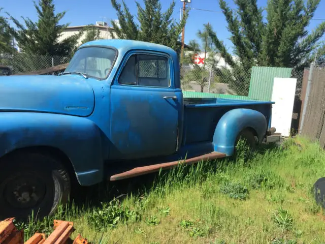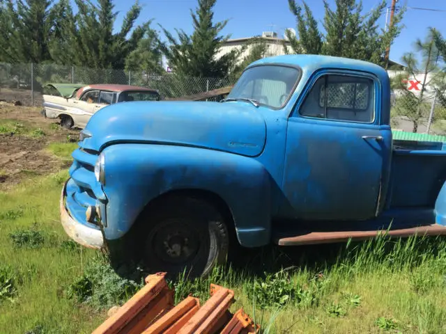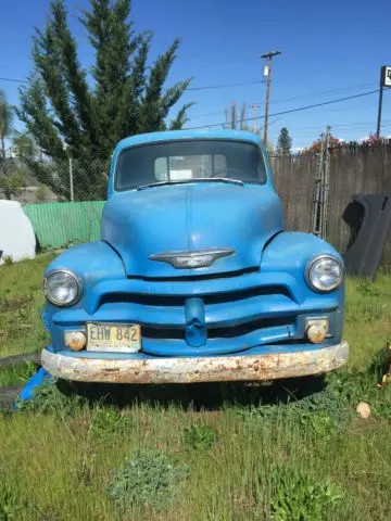truck has sat outside for last 30+ years. no rust. mother in law spray painted it blue . probably helped more that hurt lol. engine is frozen not sure if it is worth fixing. truck is the 54 model in 55 and a 3/4 ton. truck is complete its all there for the most part. no trades. sorry. $2. 00. 00 .