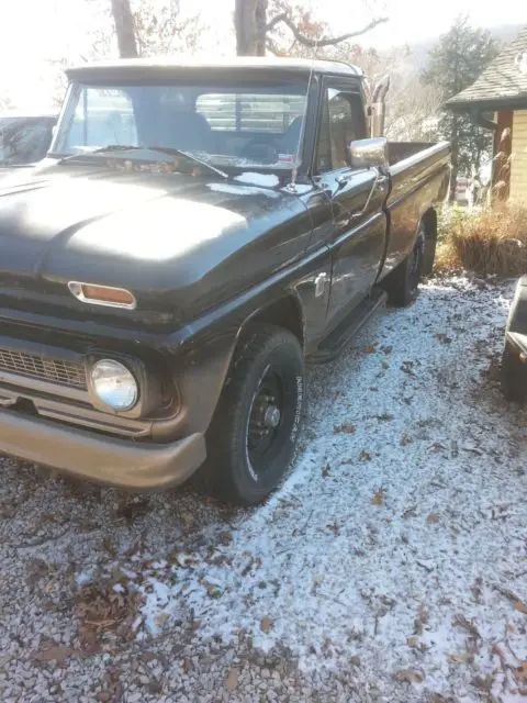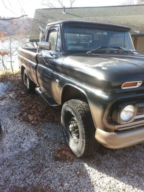 Truck is in good shape. Someone usually asks me about it or compliments it everywhere I go with it. I was told by the last owner he bought it from a body shop owner and it was redone approx. 10 years ago? There is some slight bubbling on passenger rocker and a little bit of rust on grill. as seen in pics. Interior is nice and every thing works. I drove it home about 4 hours and it runs and drives great. The engine is just a dirty 350. guessing it was from the donor? It is a 4 speed with granny. And it seems to be close to maybe 75 frame? The title is clear and in my name and titled as a 1964 chevy. Pretty heavy duty. Great rubber. Recently new clutch master. brake master. a couple of fuel lines. front brake lines. fuel pump and battery. Just had new valve cover gaskets put on as they were leaking on the exhaust some. The bed has a steel plate laid in. I have 5 vehicles currently. including a 4x4 and hate to see this sitting out all winter and my interests have kind of changed. I have it listed locally also. so I reserved the right to cancel the auction if it sells. I put it in 4x4 when I tried it out in a parking lot. I believe it was in. but there was a noise. when turning sharp. my friend did not think it was a real big deal and I wasn't too worried about using the 4x4. Sounded more like the bed tweeking or something. The truck has been sitting quite a bit. from previous owner and myself. I have owned it less than a year. I tried to tell all I could to be helpful. Contact me if there is anything I can help with. Joe 417-830-6772. Prefer after 4pm. I also have this vehicle for sale locally. So I reserve the right to sell if needed. I added a few more pictures per request. This is about as good as my phone would take with the sun out. As I had said the engine is just a dirty 350. Hope these help some. The truck is straight with the only visible rust as I had mentioned. Not much.
