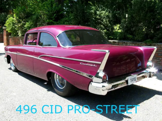 ACMAFFORDABLE CLASSICS MOTORCARS LLCQUALITY AND VALUE AT AN AFFORDABLE PRICE********* PLEASE CALL JOE AT 216-990-8207 WITH ANY QUESTIONS *****If you’re looking for a super fast. super cool. top shelf Pro Street. you will fall in love with this amazing 1957 Chevrolet Pro Street. With no expense spared on this fresh built. this is the one you’ll want to put in your garage today. a 496 CID V-8 bored 60 over and a turbo 400 3-speed automatic transmission. this fire breathing Pro Street has the power to match its eye-catching looks. Its 31 spline rear axle is fitted with a Ford 9” rear end with a street gear and cruises comfortably at 2000 RPM at 60 MPH. Fuel is supplied by a Demon 850 4-barrel carburetor. With an 11. 5 compression ratio. it runs on pumped gas with an octane booster. Other mechanical upgrades include the following:Martz chassisMustang front endRack and pinion power steeringFour-bar linkage rear suspensionGriffin aluminum radiatorNew valve coversElectric fanPainless wiringPerformance exhaust systemCustom made fuel tankPower front disc brakesWith less than 200 miles since its completion in late 2011. this fully streetable car runs and drives as well as it looks. Performance was not done at the expense of this car’s appearance. as one look at its show quality finish and visually striking color will convince you. With the exception of its fiberglass hood. this Pro Street is all steel. Custom touches include itscustom grill and a rear station wagon bumper. Custom wheels and new chrome and polished stainless steel trim complete the look. It also benefits from new glass and mirrors. The interior is equally impressive and features new seats. oor panels. carpeting. eadliner. and dash board. You will also appreciate its Flaming River tilt steering column and full battery of Westach and Dolphin instrumentation. including tachometer. Comfort features include power windows andremote opening door and trunk. One item of note is that the clock and stereo are not currently functioning. Unupholstered racing seats and racing harnesses will also be included with sale if so desired. All available documentation from the build will also be provided to the next owner of this car. If you prize quality and attention to detail. this 1957 Chevrolet Pro Street will not disappoint. For additional information and photographs of this car and others available for sale. PLEASE SEE OUR WEBSITE which can be accessed by clicking on "classicmotorcarsonline" in the "Seller Info" contained at the top right of this page. Please call Joseph at AFFORDABLE CLASSICS MOTORCARS LLC at 216-990-8207 with any questions. Additional photographs and cars are also available. Please inquire. We have had many satisfied domestic and international customers and would welcome your business. All cars are stored indoors and are in impeccable condition. Please click here to see our other items. Please click here to add us to your favorites list. Although all best efforts have been made to accurately describe and evidence the condition of this car. this vehicle is sold AS IS. WHERE IS. with no warranties. expressed or implied. ACMAFFORDABLE CLASSICS MOTORCARS LLCQUALITY AND VALUE AT AN AFFORDABLE PRICE Mission StatementTo provide high quality. affordable and fun classic and collector cars from the 1970s and 1980s to car enthusiasts in the United States and abroad in a comfortable and low-stress environment as we unite our customers with the cars of their dreams. Our goal is to provide our customers with a positive buying experience that reflects the highest levels of trust. integrity. and ethical standards that will reward them with many years of motoring pleasure.