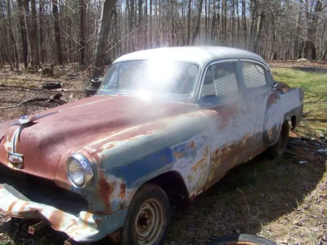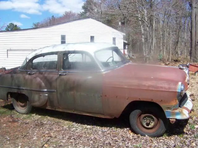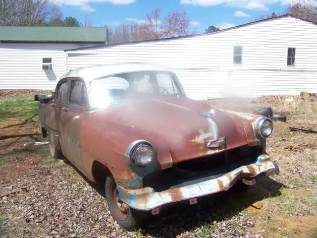 up for bid is a1954 chevy that was started on some years ago and i guess they gave up the seats are all redone in choth and very nice dash is ucut and also very nice this would make a nice rat rod or restore no title bill of sell only no eng or trans the front grille is there and also the front bumber