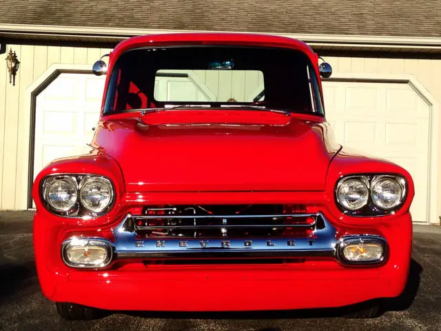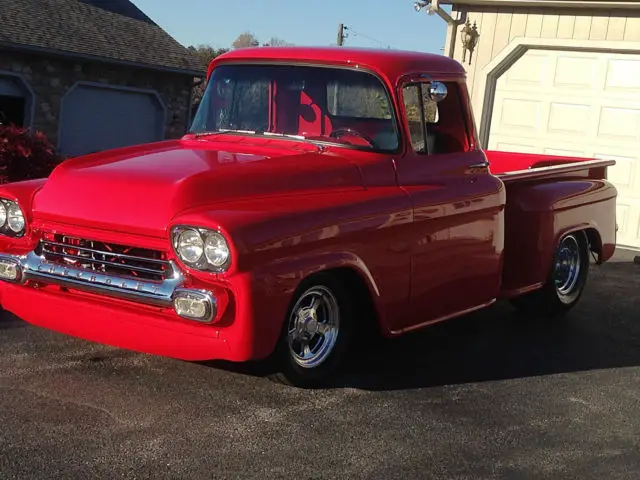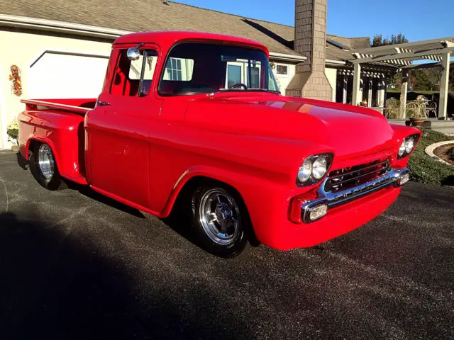 Chevrolet is known for their unique '50s good looks in virtually everything they produced. This 1959 short bed is no exception. It has been completely disassembled. restored and modernized. The frame has a Mustang II front end complete with power rack and disc brakes while the rear end has a 4 link setup with coil springs. The engine is a stalwart roller 350 built by Harmon's machine shop with a 350 transmission and a new driveshaft to attach it to a 373 rear end. The body has new doors. new inner and outer fenders. new front roll pan. new radiator support. complete new bed. nbsp;all new glass. nbsp;and a new beautiful "wide mouth" grill. The interior has a smooth and painted dash with all new gauges and for comfort while cruising there is an Ididit tilt steering column and Vintage heat and air conditioning. A lot of time and money has been spent creating this beautiful head turning short bed. Don't miss this opportunity to own a super cool truck that can be driven and shown with pride.