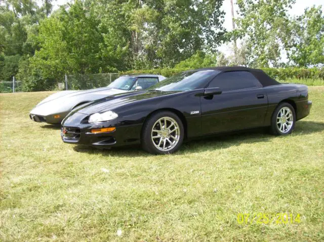 1998 Z/28 CAMARO CONVERTIBLE 36500 ORIGINAL MILES GM SS HOOD GM17 INCH SSWHEELS OVER $15000.00 OF ENGINE /DRIVETRAIN UPGRADES CAM HEADS HIGH VOLUME OIL PUMP HEADERS INTAKE TRANS REBUILT / SHIFT KIT TRANS COOLER CHROME MOLY DRIVESHAFT 12 BOLT REAR END/410 GEARS 400 HP AT REAR WHEELS NEW EIBACHSPRINGS F/R NEW BRAKES /SLOTTED AND DRILLED ROTORS 3 INCH STAINLESS EXHAUST BLK TOP BLK BODY GRAPHITE INTERIOR LIKE NEW GARAGE KEPT STORED WINTERS NEVER IN RAIN 2ND OWNER 15 YRS EMAIL OR CALL 586 206 6792 NO DEALERS MUST SELL BOUGHT NEW CAR