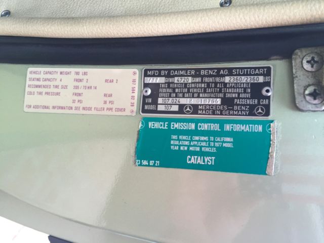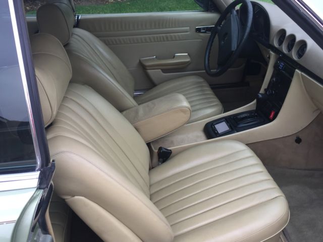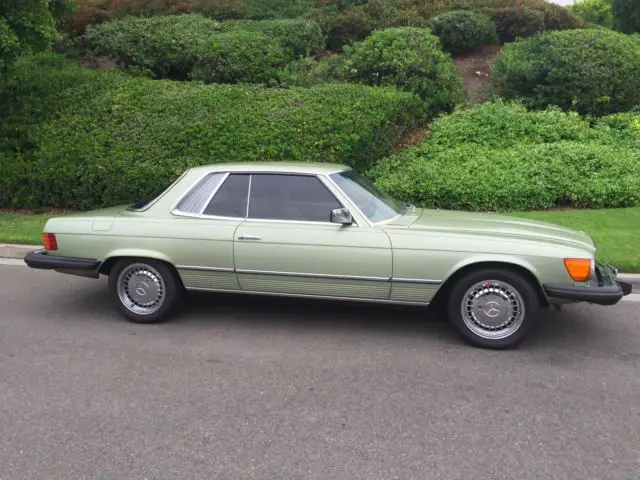 Beautiful '77 MBZ 450 SLC; Sea Foam green w/ tan interior; sun roof; chrome wheels, M/FM aftermarket radio w/ electric antenna; AT, C, S, B, PS system integrated into center console; 142K miles believed to be original; I have owned this car for almost 8 years and have maintained it perfectly with indoor storage. Car just had suspension system reworked and it drives like a dream. Paint is in great shape with only a few chips. No known rust on the car. Car is being shown locally and seller reserves the right to close the auction before close date if car sells locally. Call w/ any questions to: Bob @ nine4nine500-0093