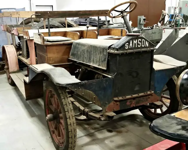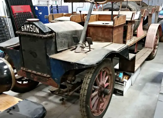 Samson trucks were first built in Flint, ich., n 1920 after General Motors Corp. bought out Samson Tractor Works. The M-15 model sold for $655 and the M-25 for $1,095. Both trucks were built for farm use, itted with extension rims with plain cleats in front and shallow cleats in the rear for ease of driving over plowed fields. Samson truck production was halted in 1923. The City of Janesville (Wis.) Street Department continued use of its fleet of Samsons until the late 1940s.