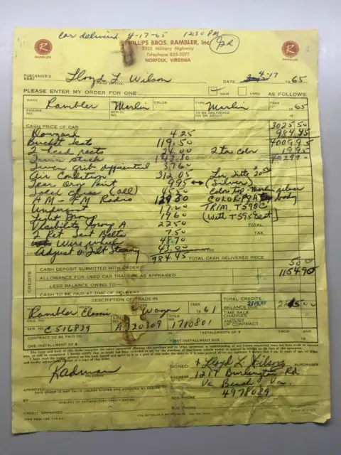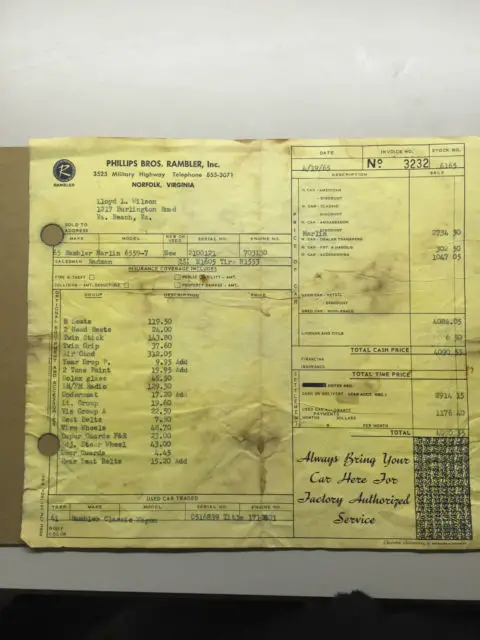 I haven't the fancy backdrop to sell this vehicle but I do have the fancy vehicle BARN FIND original paint car which Ive putup for auction. DOCUMENTED Rare 1965 Marlin Twin Stick with factory air conditioning (A/C, he A/C dash piece needsreinstalled (otherwise complete), win stick manual, are Tilt wheel, cylinder, black/white interior, qua exterior black roo, ew carpet, riginal spare in trunk and original trunk matt, lectric wipers, M FM Radio. All the right options. All weve done is wet sand with 2000 grit buffed and polished. Ask questions I will answer. Zero rust on car. A few spots have had little blow ins which are well done in the past. This vehicle I purchased from second owner which was good buddy of original owner. He bought the car in 1980 parked in his garage and that's the end till I purchased this year. Some day these vehicle will be auctioned for large money once they are noticed properly. This car has ALL THE DOCUMENTATION. BUILD SHEET, RIGINAL BILL OF SALE . ALL DOCUMENTS ON PRIOR SERVICE WORK HISTORY ETC. UNBELIEVABLE RECORDS. SEE PHOTOS