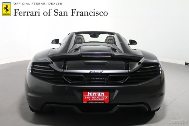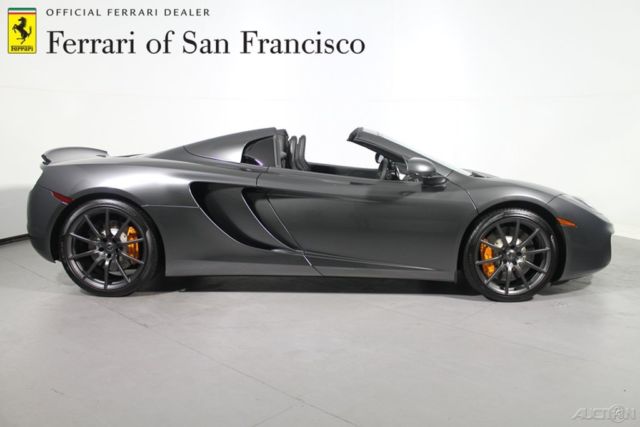 2013 McLaren MP4-12CSpider 2013 marks the first year of production for the MP4-12C Spider(convertible) variant, hich has a retractable hard-top roof. It returns with a more powerful engine tunedto make 616 horsepower due to refinements made to the engine-control software –revisions to its transmission responsiveness, nd expanded paint, eather andwheel options. Introduced in 2012, heMP4-12C establishes McLaren as a legitimate player in the elite world oftrack-ready supercars. A mid-mounted V8engine that now makes well over 600 horsepower is at the heart of the McLaren’senviable performance figures, hile a supple 2-seat interior and a surprisinglyrefined ride help make this quarter-million-dollar car more livable than othersin its rarified air. Standard equipmenton the 2013 McLaren MP4-12C spider comes with a twin-turbocharged V8 engine, 7-speed dual-clutch automatic transmission with manual capability, 9-inchwheels in front and 20-inch wheels at rear, i-xenon headlights, ruisecontrol, 7-inch touchscreen monitor, ual-zone climate control and a Meridian4-speaker sound system with AM/FM/USB/hard drive and iPod integration. Thecoupe and Spider also feature a unique Intake Sound Generator system that letsdrivers vary the amount of engine noise entering the cabin. Please call sales with any questions or to schedule a viewing: 415-380-9700