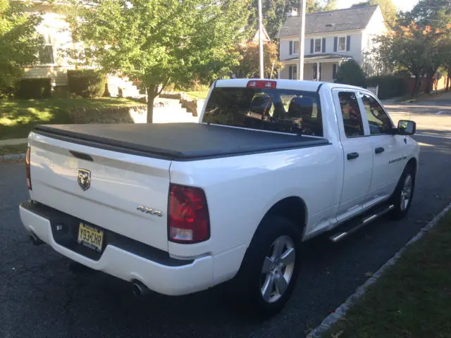 2012 Ram 1500 Quad Cab 4x4 in excellent condition. 5.7L Hemi V8 engine, 0 inch aluminum wheels, ual rear exhaust, ront and rear Ram floor mats, og lamps, ull size temporary spare tire, 2 gallon fuel tank. Has non slip bed liner, ri fold tonneau cover and full length running boards. Sirius XM Satellite radio, ruise control, /c, eated mirrors, ne touch up/down front windows, ar has been well maintained, ever smoked in and never involved in an accident.